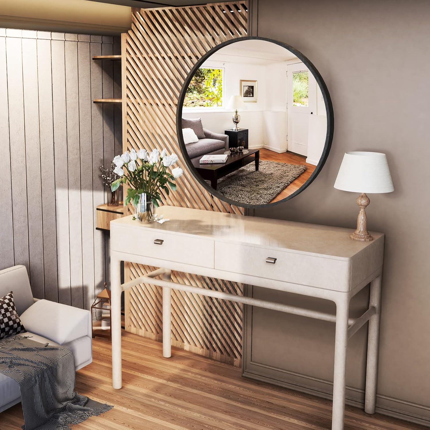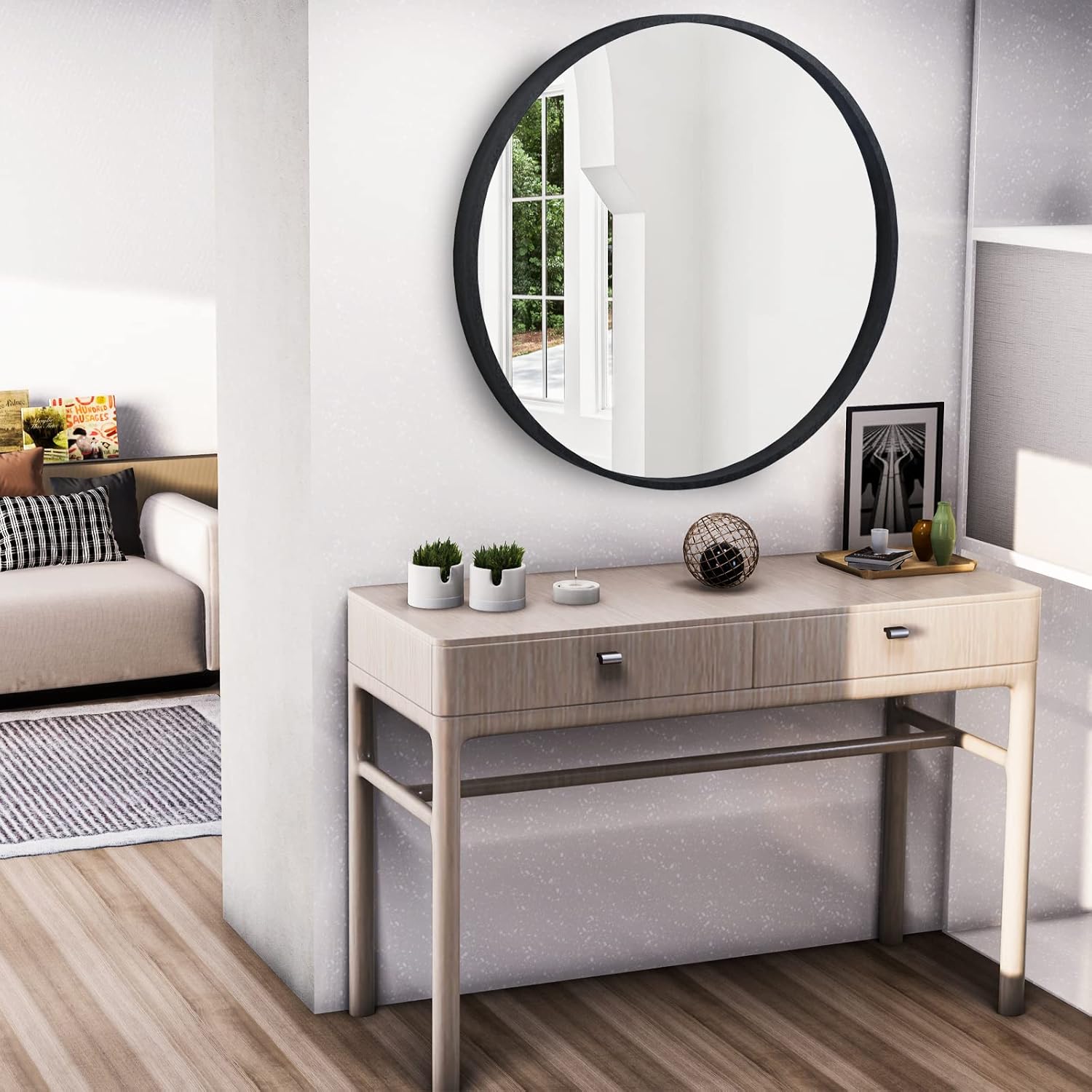 WallBeyond Round Wood Mirror 32 inch Black Circle Wall Mirror for Bathroom Round Wall Mirror for Wall Decor, Vanity, Entryway Living Room
