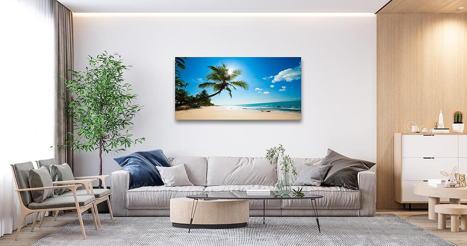 Muolunna X0650 Large Canvas Wall Art Summer Ocean Waves Prints Coconut Trees Beach Seascape Painting Hawaii Sea Nature Pictures Stretched and Framed for Living Room Home Office Wall Decor Artwork