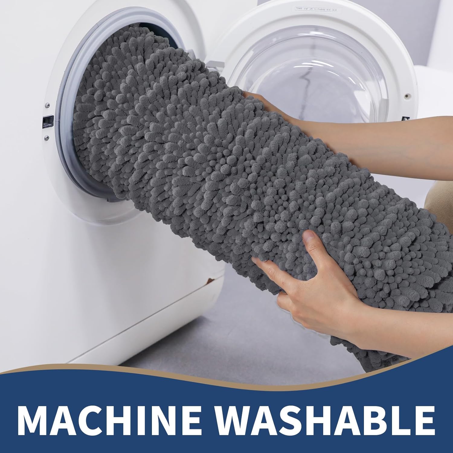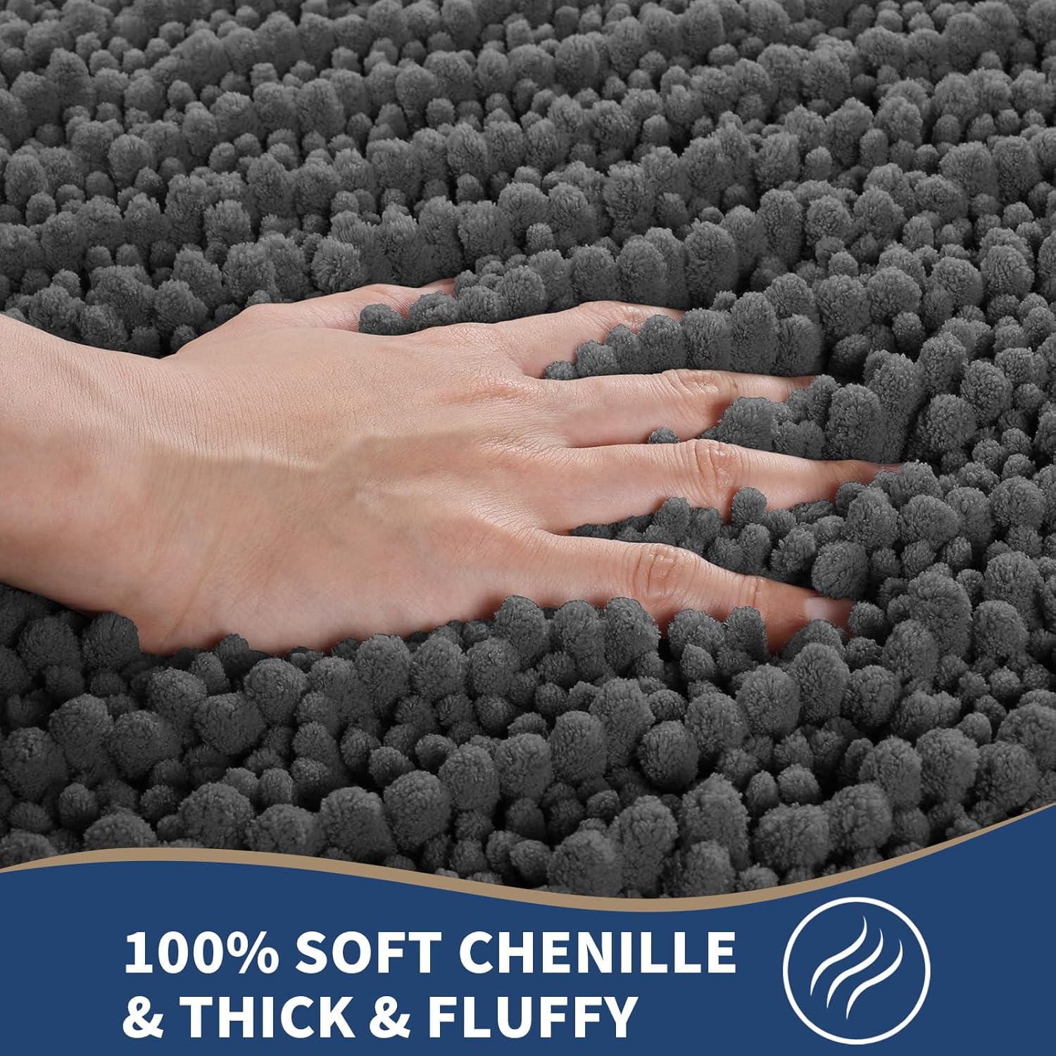 Yimobra Bathroom Rugs Sets 2 Piece - Quick Dry Extra Thick Luxury Chenille Bath Mat, Non Slip Super Absorbent for Tub Shower Sink, Machine Washable Shaggy Floor Mat, 32"x20"+24"x20" Inch, Dark Grey