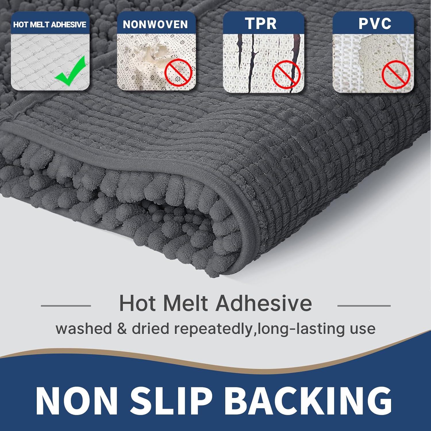 • Ultra Absorbent & Quick-Dry Chenille: Our bath mat set instantly soaks up water from showers and tubs (97% absorption rate). Its vertical air-channel chenille fibers ensure rapid drying, preventing wet floors and keeping your bathroom fresh