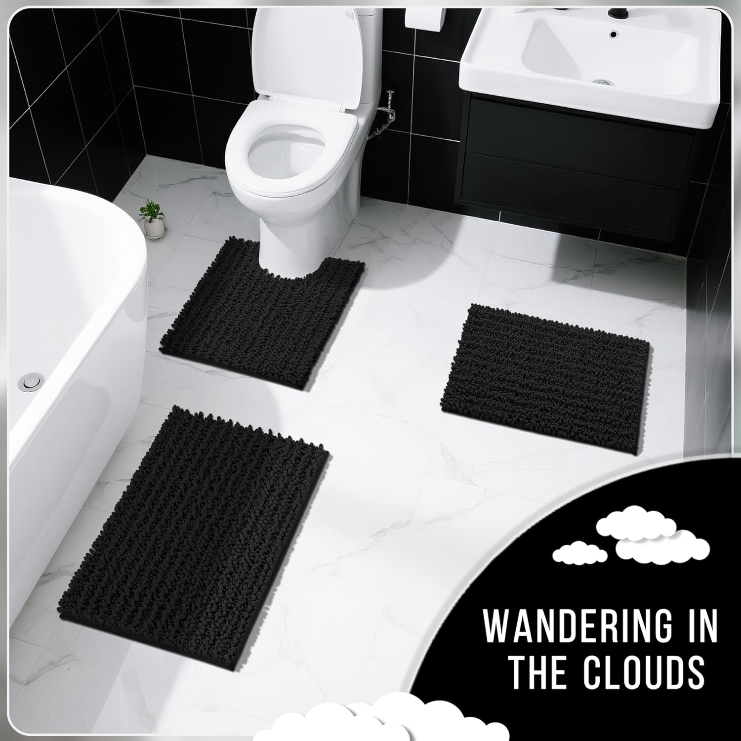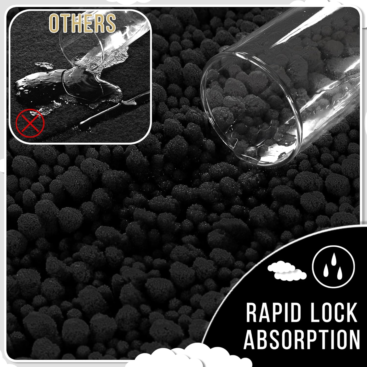 Yimobra Bathroom Rugs Sets 2 Piece - Quick Dry Extra Thick Luxury Chenille Bath Mat, Non Slip Super Absorbent for Tub Shower Sink, Machine Washable Shaggy Floor Mat, 24"x17+24"x20" Inch, Black