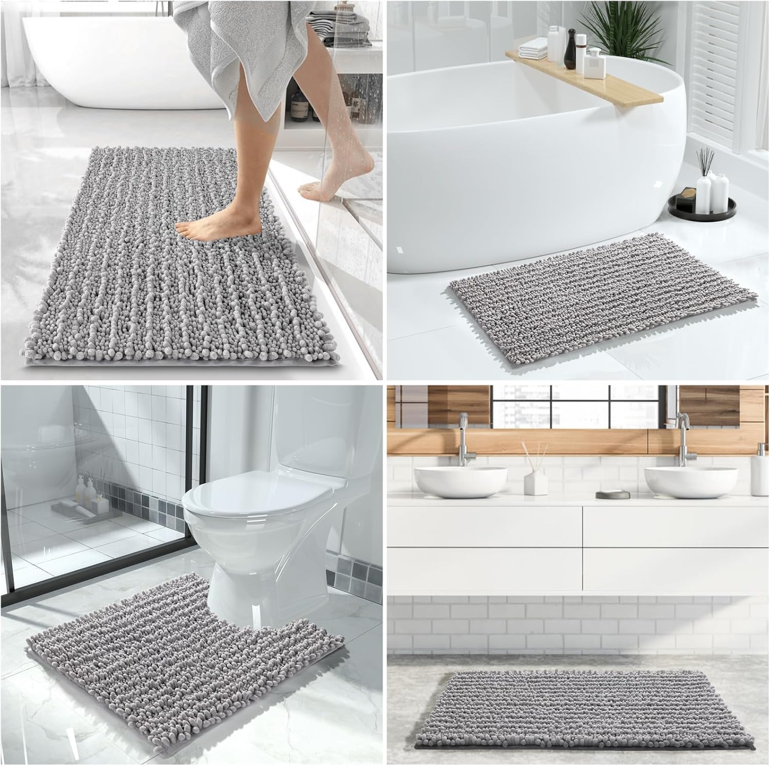 Yimobra Bathroom Rugs Sets 2 Piece - Quick Dry Extra Thick Luxury Chenille Bath Mat, Non Slip Super Absorbent for Tub Shower Sink, Machine Washable Shaggy Floor Mat, 24"x17+24"x20" Inch, Grey