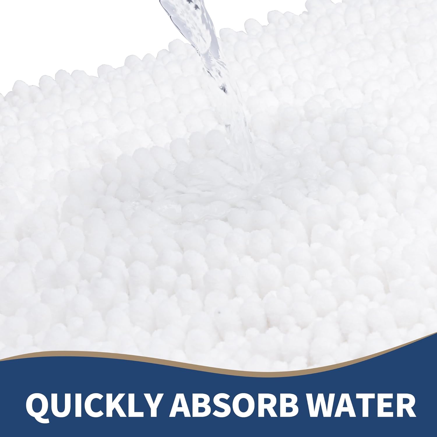 Yimobra Bathroom Rugs Sets 2 Piece - Quick Dry Extra Thick Luxury Chenille Bath Mat, Non Slip Super Absorbent for Tub Shower Sink, Machine Washable Shaggy Floor Mat, 24"x17+24"x20" Inch, White