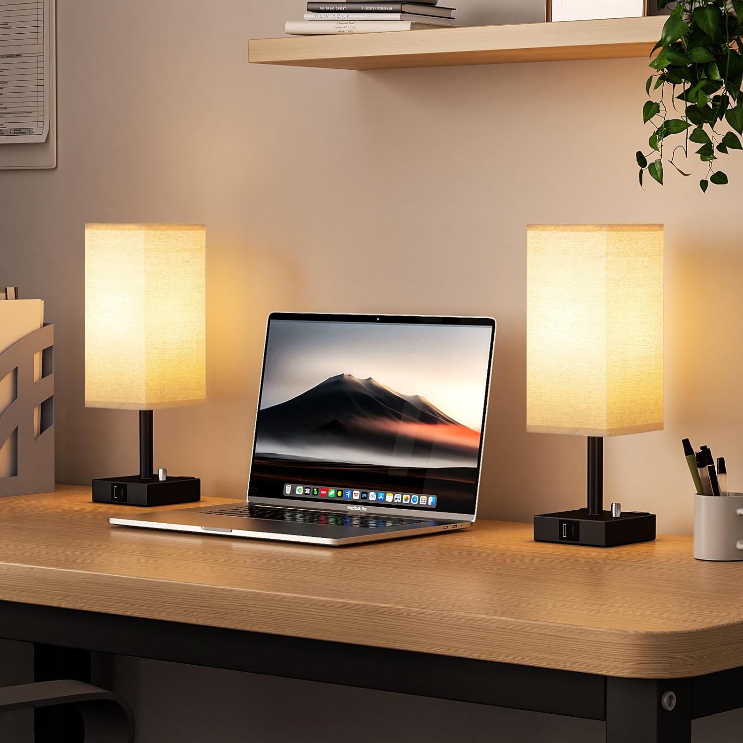 - 2 Energy Efficient LED Bulbs Included - This nightstand lamps set of 2 packed with dual dimmable E26 LED bulb. NO FLICKER, NO DAZZLE. These two 3000K bulbs can help bring a warmer ambience to our decor lamp.(Note:This table lamp is most compatible with the bulbs we deliver, we do not recommend using other bulbs.)