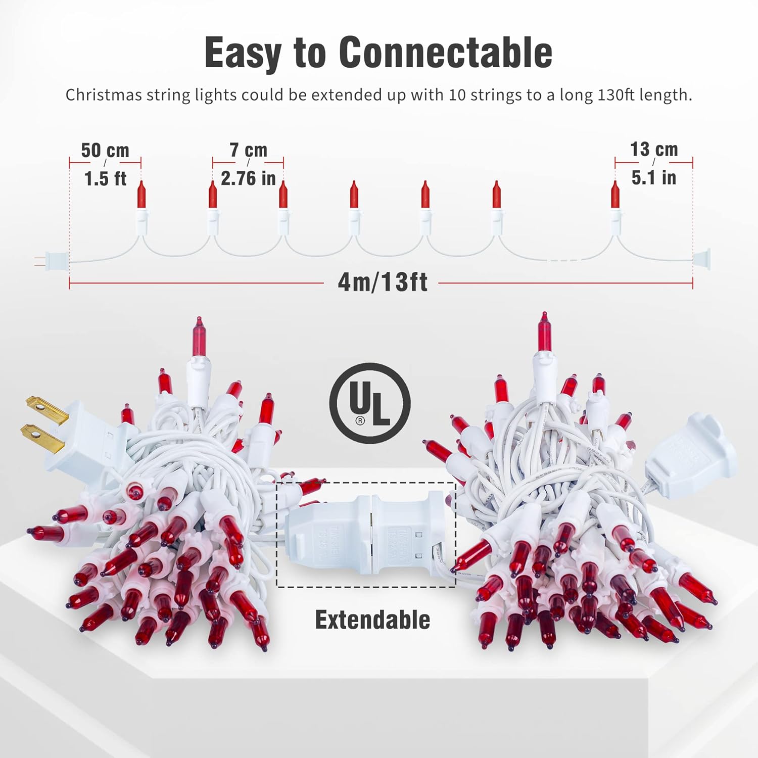 • Premium & Safe:Beewin incandescent red mini Christmas lights are made of high-quality material and superb craftsmanship,built-in fuses,universal UL listed certification,and standard grade mini light string with average lifespan of 2,500 hours