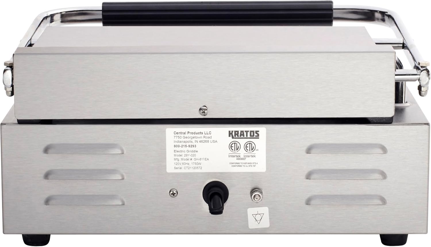 Kratos Commercial Electric Panini Sandwich Grill with Grooved Plates, 14" x 9" Cooking Surface, Commercial Countertop Panini Press, 120V, 1750W (29Y-020)