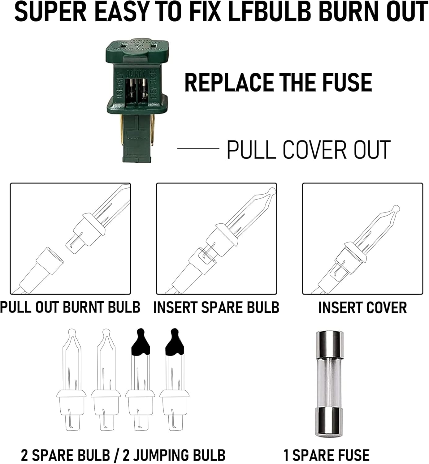• Safety Features: The lights come with a built-in 3A fuse for added safety and have UL certification.