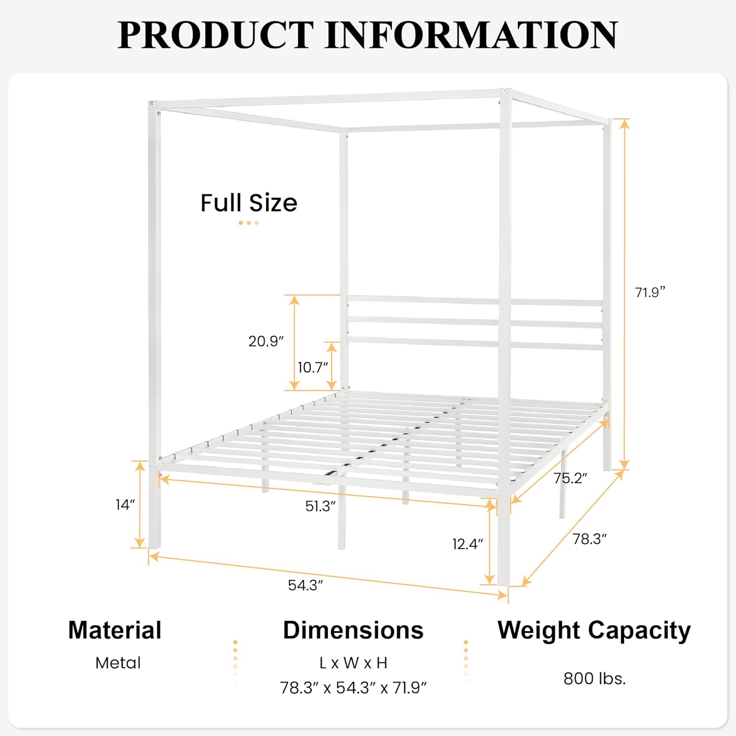 SHA CERLIN Canopy Bed Frame Full Size/Mattress Foundation with Metal Slats Support/No Box Spring Needed/Easy Assembly/White