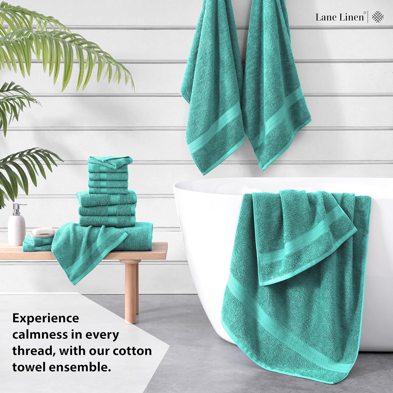 LANE LINEN 100% Cotton Luxury Bathroom Towel Set - 16 Pieces - Ring Spun, Quick Dry, Super Soft & Absorbent - 4 Bath, 8 Washcloths, 4 Hand Towels - Remains Fluffy Even After Multiple Washes - Teal