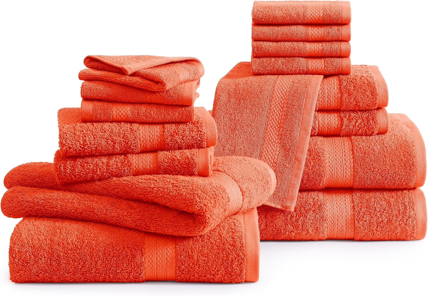 Lane Linen 100% Mercerized Cotton Bathroom Towel Set - 16 Pieces - Fluffy, Super Soft & Highly Absorbent - 4 Bath Towels, 8 Washcloths, 4 Hand Towels - RingSpun, Double Sided Cotton Terry - Tiger Lily