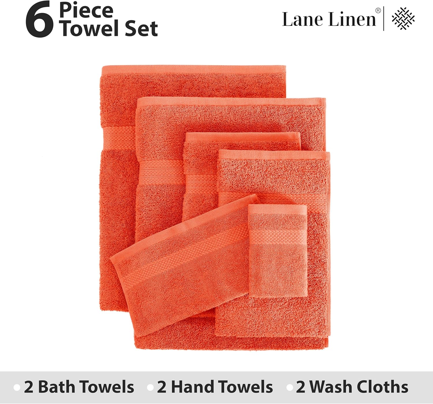 LANE LINEN 100% Cotton Luxury Bathroom Towel Set - 6 Pcs - Ring Spun, Quick Dry, Very Soft & Absorbent - 2 Bath, 2 Washcloths, 2 Hand Towels - Remains Fluffy Even After Multiple Washes - Tiger Lily