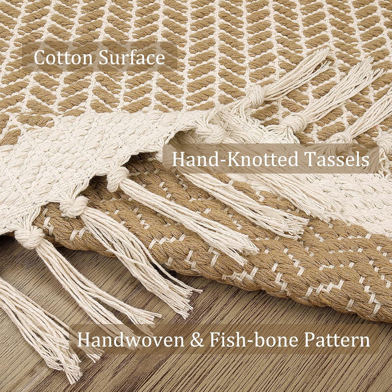 Lahome Boho Bathroom Rugs, Small 2x3 Front Door Mat Lightweight Kitchen Rug Woven Cotton Area Rug with Tassels, Farmhouse Non Shedding Washable Throw Rug Low Pile Carpet for Entry Laundry, Khaki