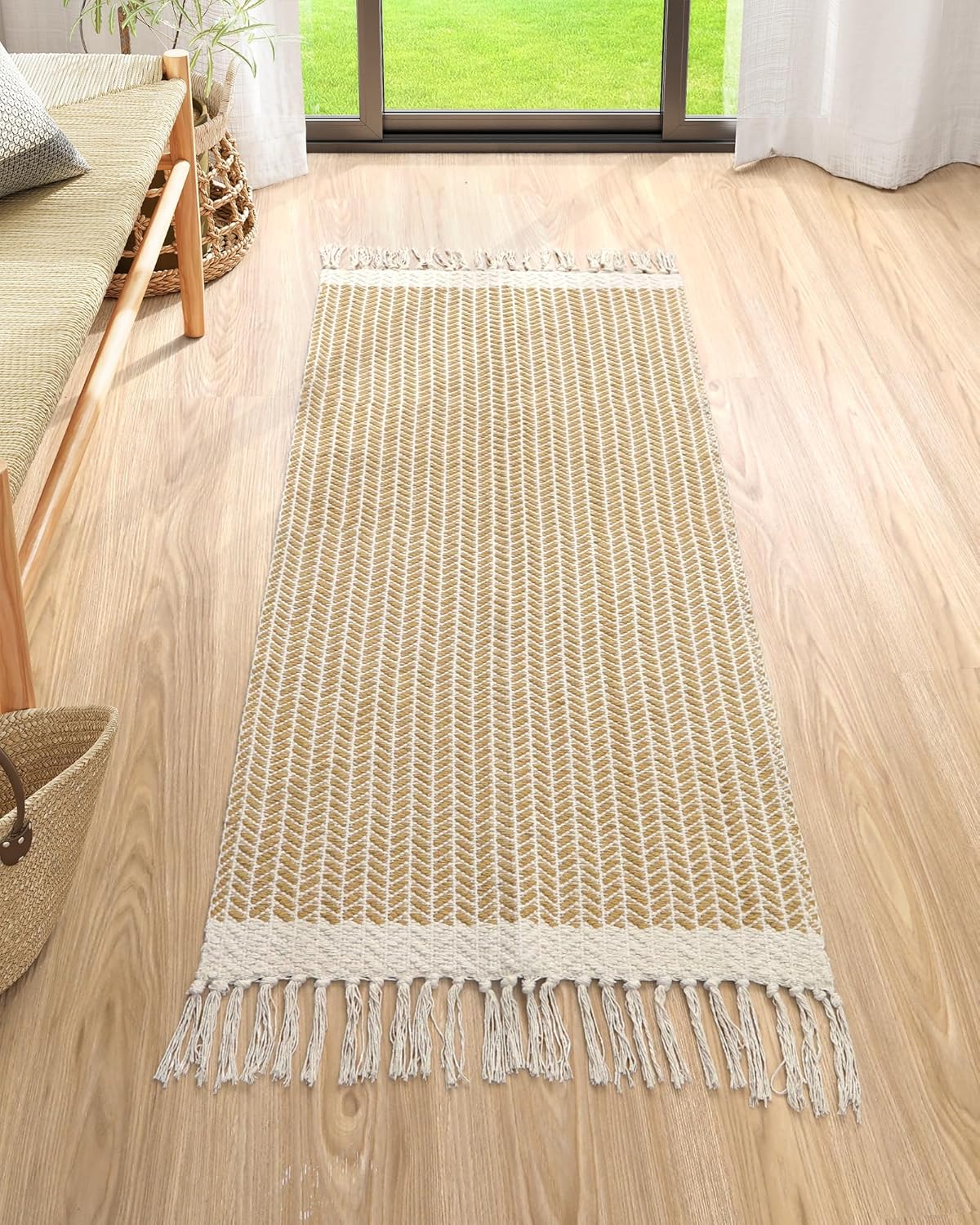 Lahome Boho Kitchen Runner, 2x4.3 Bathroom Runner Rug Lightweight Entryway Rugs Woven Cotton Throw Mat with Tassels, Farmhouse Non Shedding Washable Rug Low Pile Runners for Bedroom Doorway, Khaki