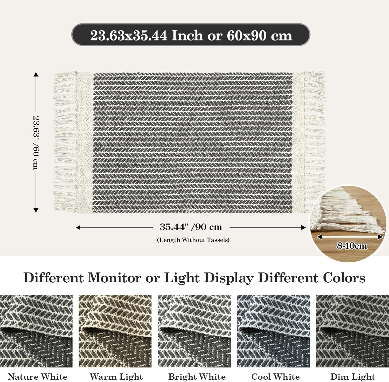 • About Size: This fishbone woven rug measures a versatile 2'x3' (approx. 23.63x35.44 inches or 60x90 cm). Note: The elegant fringe adds an extra 8-10cm (approx. 3-4") per side, enhancing the hand-woven texture and creating a more generous, finished look