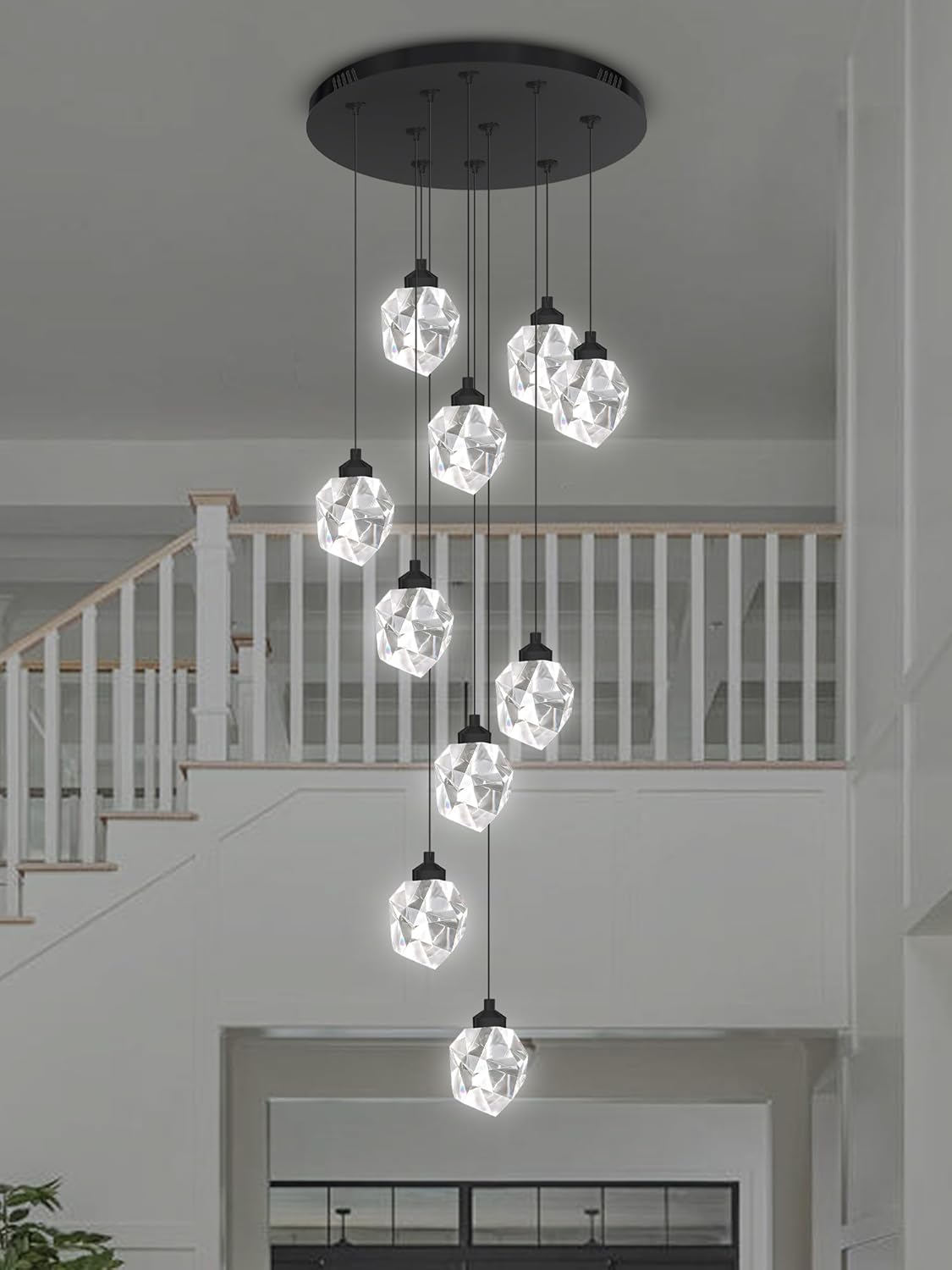 - ✨【High Ceiling Chandelier Modern Led Chandelier Design】The modern and minimalist led crystal teardrop chandelier design is being timeless. Polished chrome stainless steel ceiling canopy, 10 elegant clear ice crystal spiraling downward,stainless steel design makes this crystal chandelier richer in refraction surface, K9 crystal ball polyhedron cut, as dazzling as diamond, you will love the glow of this lamp.