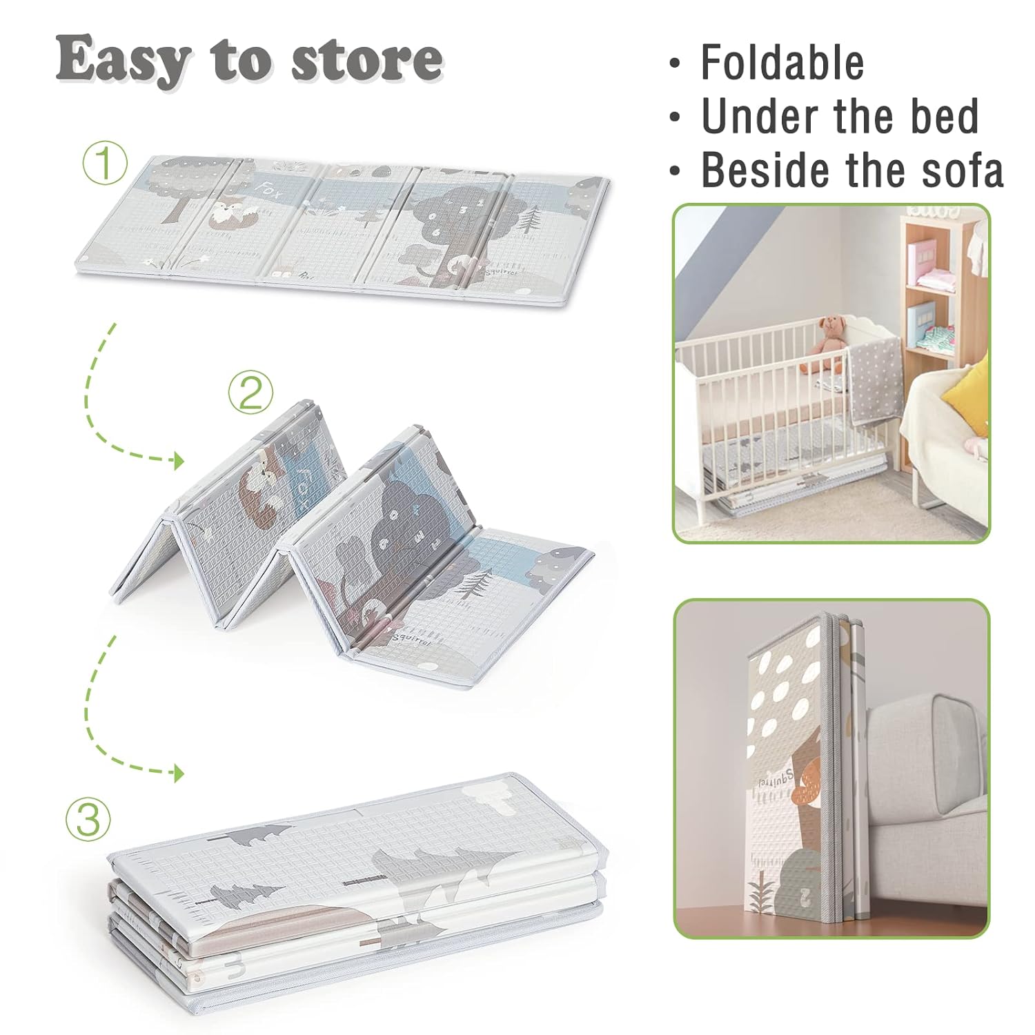 • Folded size very small: This baby play mat folds up to very little space(Length: 6 x iphone 11) and could easily fit under a bed or in the corner,This baby mat will fit pretty much anywhere