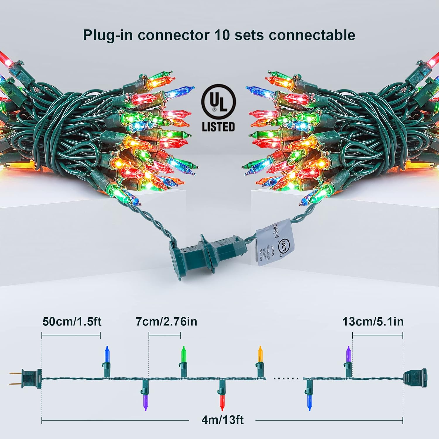 - ๐50Count Mini String Lights: Light up the upcoming Christmas with Mimigogo 13ft 50count Multicolor Christmas string lights is with Green Wire,which comes with 2Extra Bulbs and 2 Replacement Fuses. In addition, our wires is more durable compared with other string lights. You can use it for a long time without fear of burning it out.