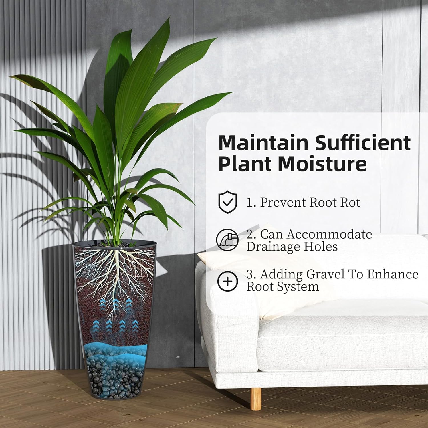 • Lightweight And UV Resistant: Set of 2 lightweight, tall outdoor planters made from durable, UV resistant recyclable plastic.