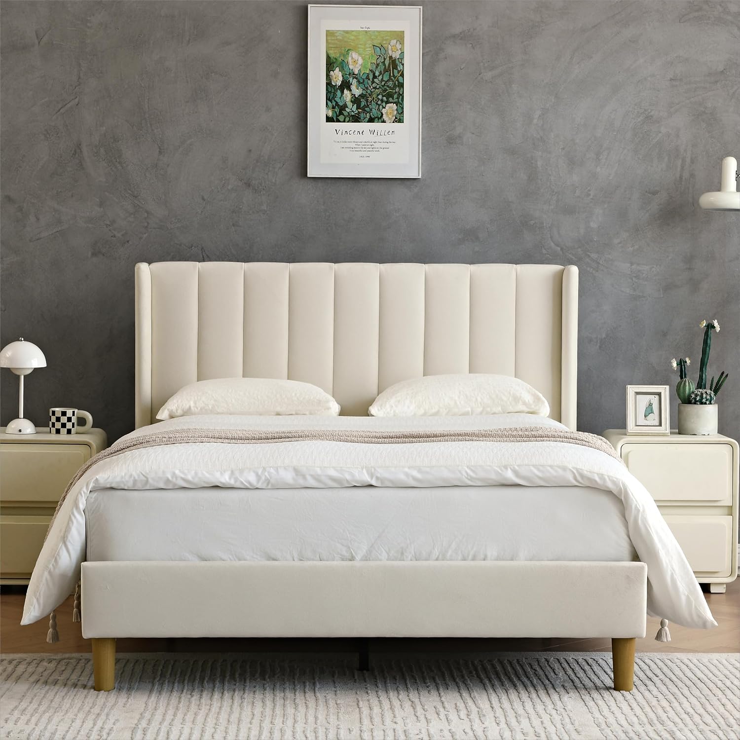• [SIMPLE AND COZY HEADBOARD] Modern style stylish wingback design with velvet fabric covered headboard brings a chic atmosphere to your bedroom.