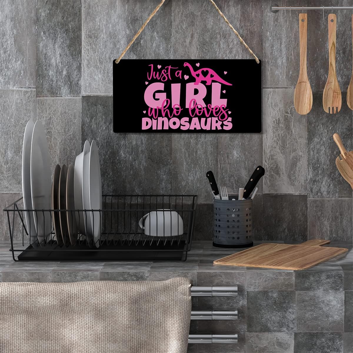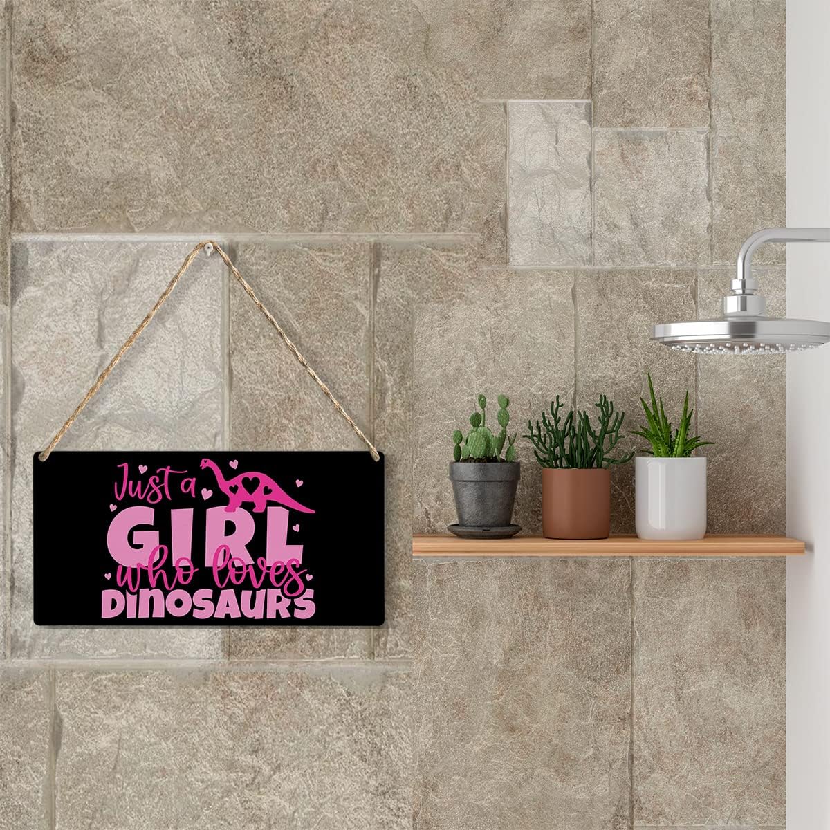 Funny Just a Girl Who Loves Dinosaurs Wood Sign Rustic Dinosaurs Lovers Pink Wooden Hanging Plaque for Home Living Room Girl Bedroom Wall Art Decoration 6 x 12 Inches Present