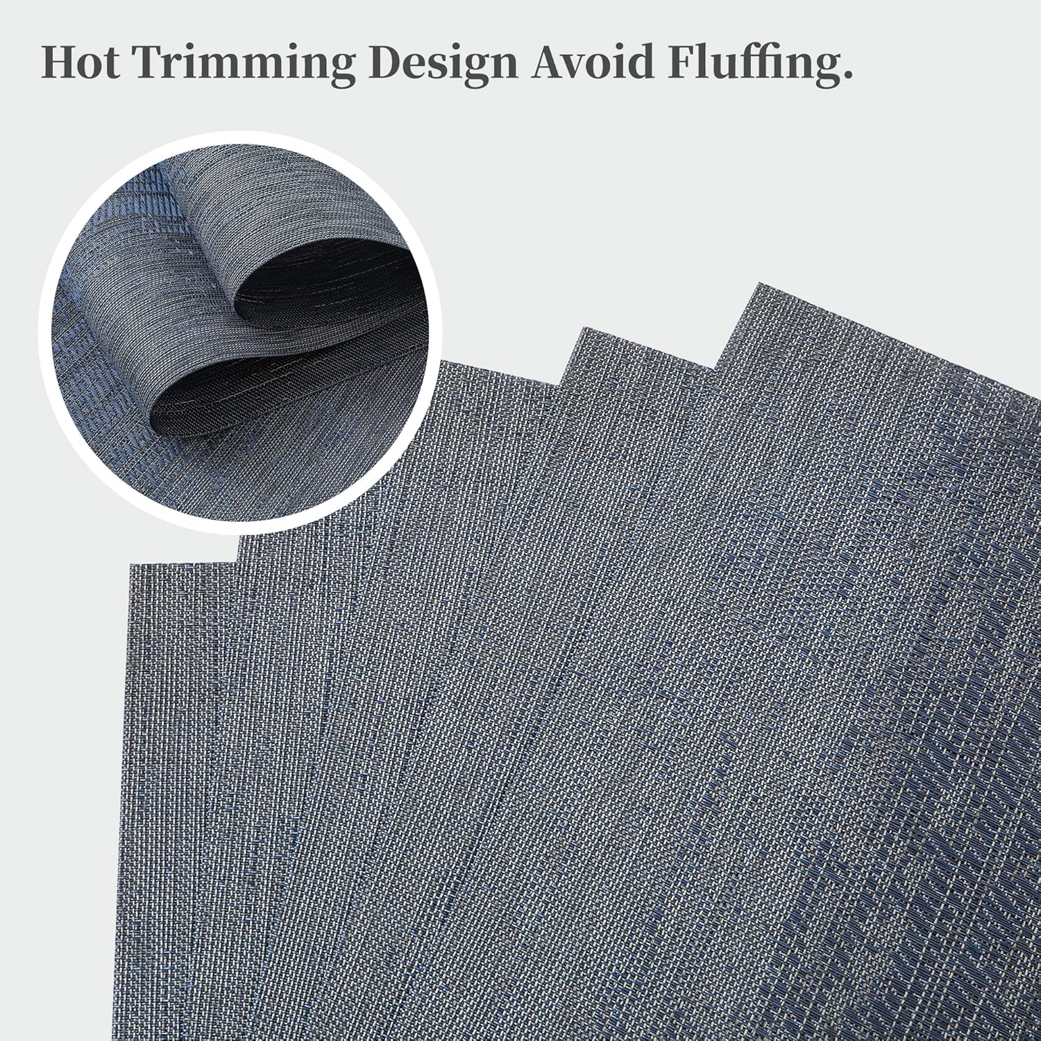 Leetaltree Denim Blue Placemats Set of 4 - Heat Resistant Non-Slip Place mats for Dining Table, Washable Durable PVC Vinyl Woven Table Mats(Denim Blue, 4)
