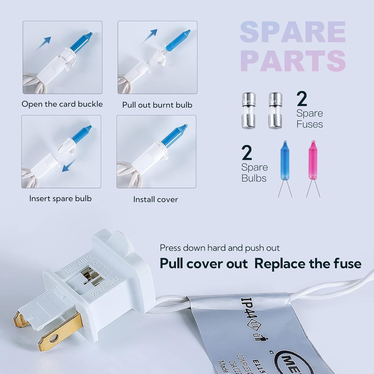- ๐ฒUnique Design incandescent mini Lights: The bulb has a snap-on design and is very easy to replace. When one of our bulbs breaks, it doesn't affect the other bulbs. This is a very special design. You can replace damaged bulbs individually with the spare bulb or fuse provided by us.