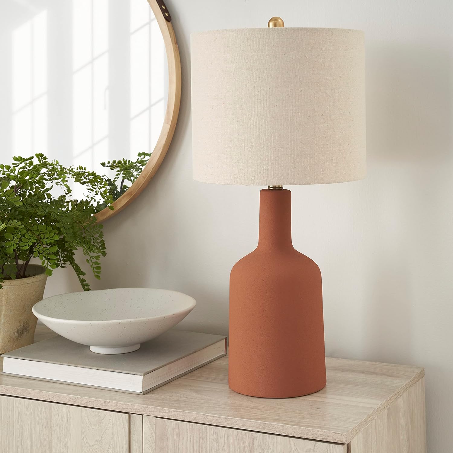 Nourison Home 22" Orange Terracotta Ceramic Table Lamp for Modern, Transitional, Bedside Table, Living Room, Dining, Entryway