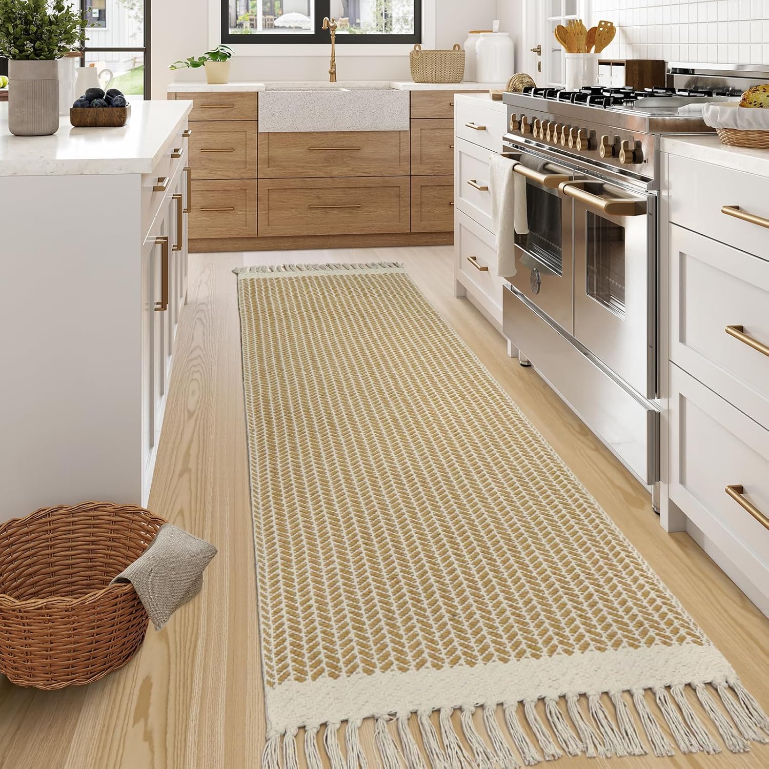 Lahome Boho Laundry Room Rug, 2x7 Runners for Hallways Lightweight Entry Woven Cotton Runner Rug with Tassels, Farmhouse Non Shedding Washable Rugs Low Pile Runner for Kitchen Bathroom, Khaki