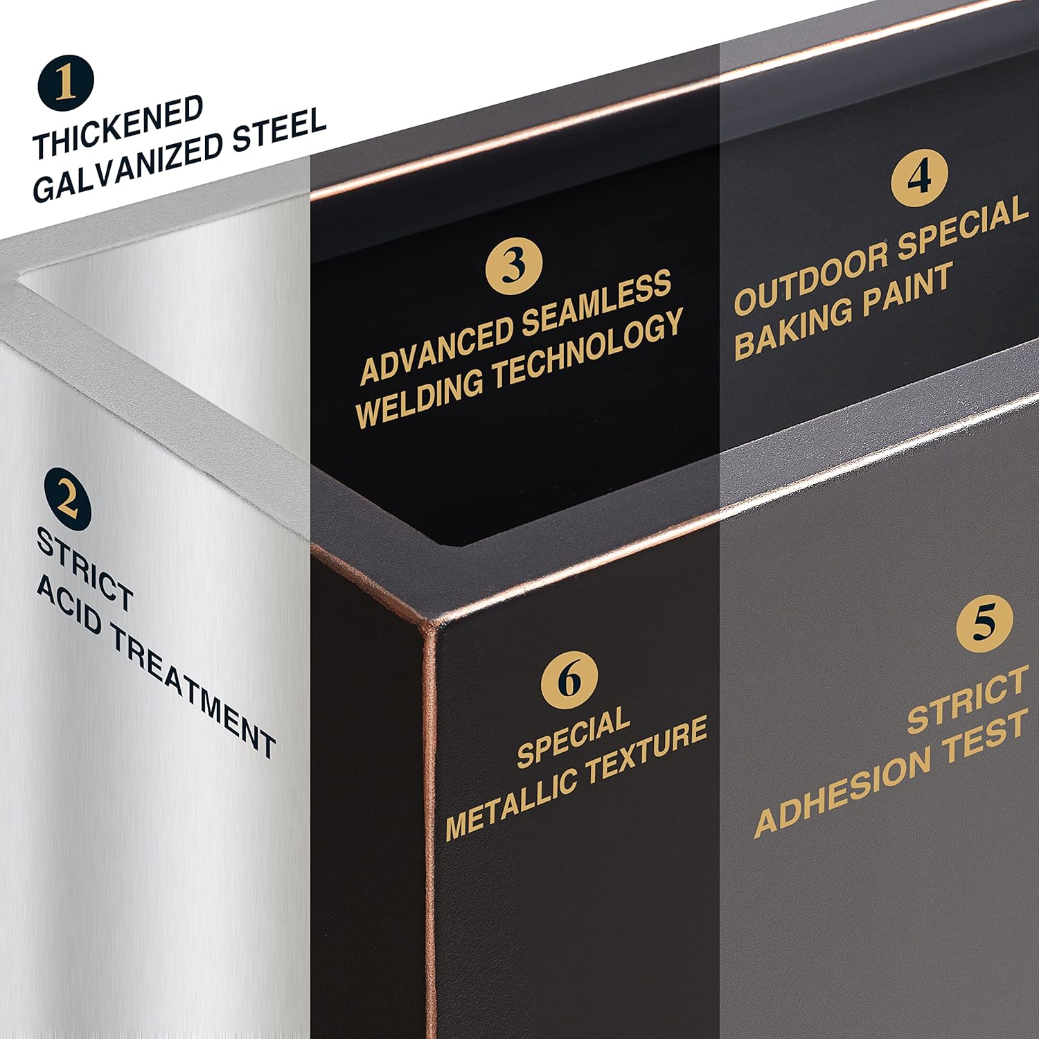 Wallowa Metallic Heavy Long and Large Outdoor/Indoor Planter, Rectangular Trough Planter Box, 38”Lx15”Wx15”H, 40Pounds, Black with Hand Brushed Gold Edge, No Assemble and Seamless