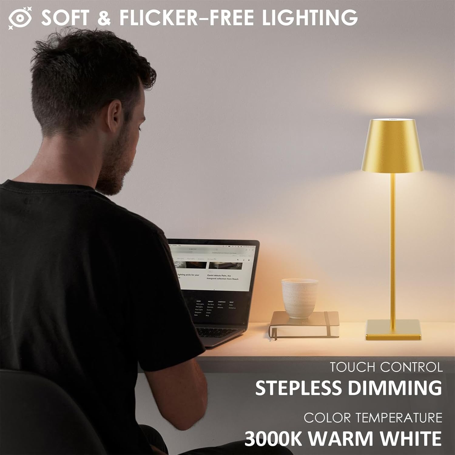 • 【Minimalist Design】 High quality material, simple design. The shell is made of high quality metal aluminum with frosted coating process, scratch resistant and not easy to produce scratches. Built-in LED wick, acrylic lampshade, bright and non-blinding when you turn on the light, 360 degrees of dead-end lighting. The bottom is made of non-slip silicone, so that the lamp is not easy to fall.