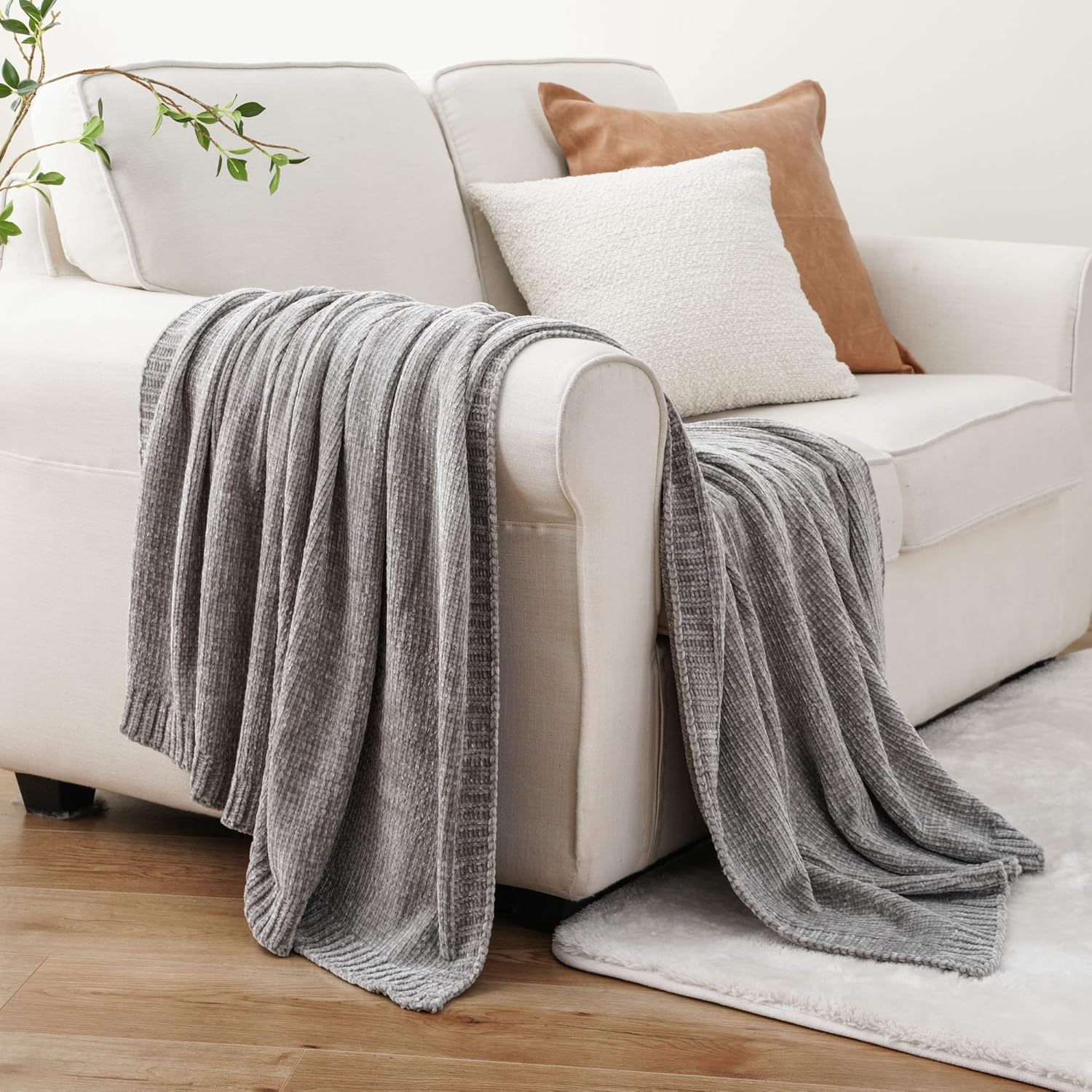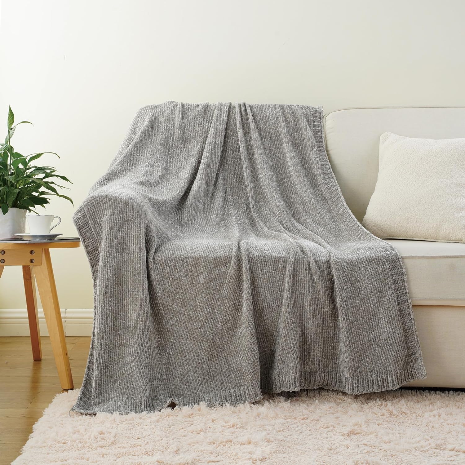 BATTILO HOME Light Grey Throw Blanket for Couch, Soft Knitted Chenille Throw Blanket for Sofa, Chair, Living Room, Cozy Gray Throw Blankets for Bed,51"x67"
