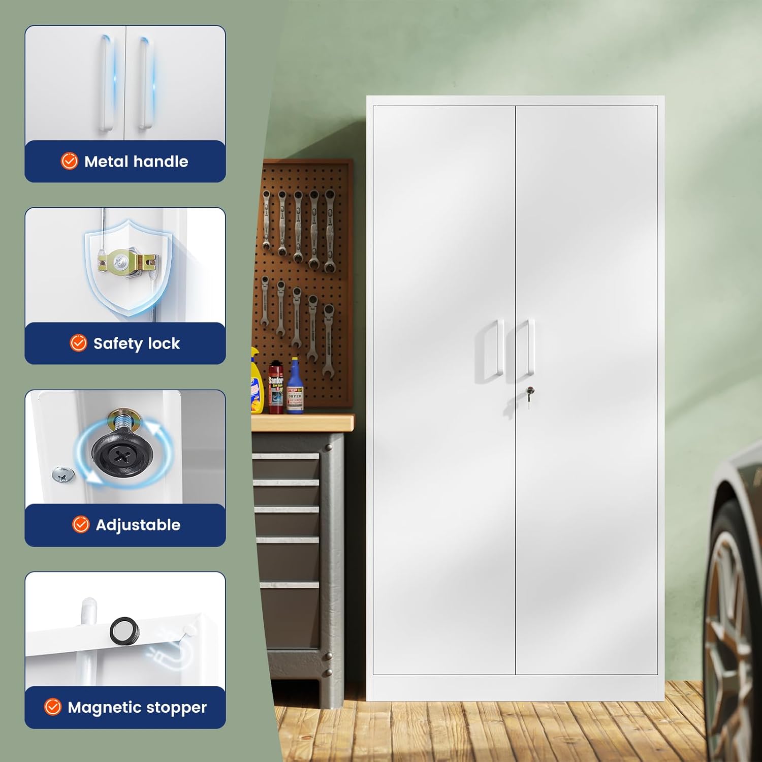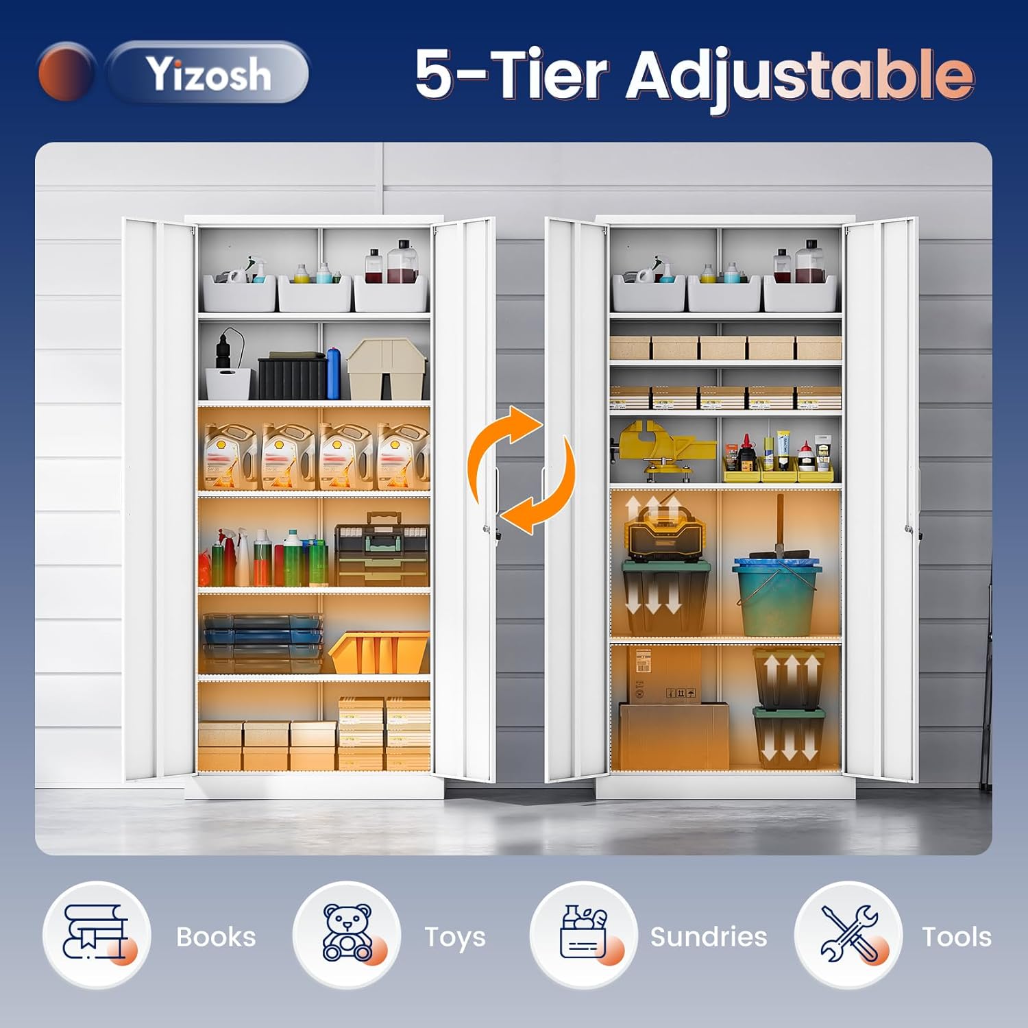 - 『PRACTICAL DESIGN』:Our tall metal cabinet equipped with lock and 5 adjustable shelves to provide adaptability and convenience. High-grade lock picking to secure valuables, two keys are included. Regardless of what your storage needs are, you have the ability to create a unique storage space to suit them.
