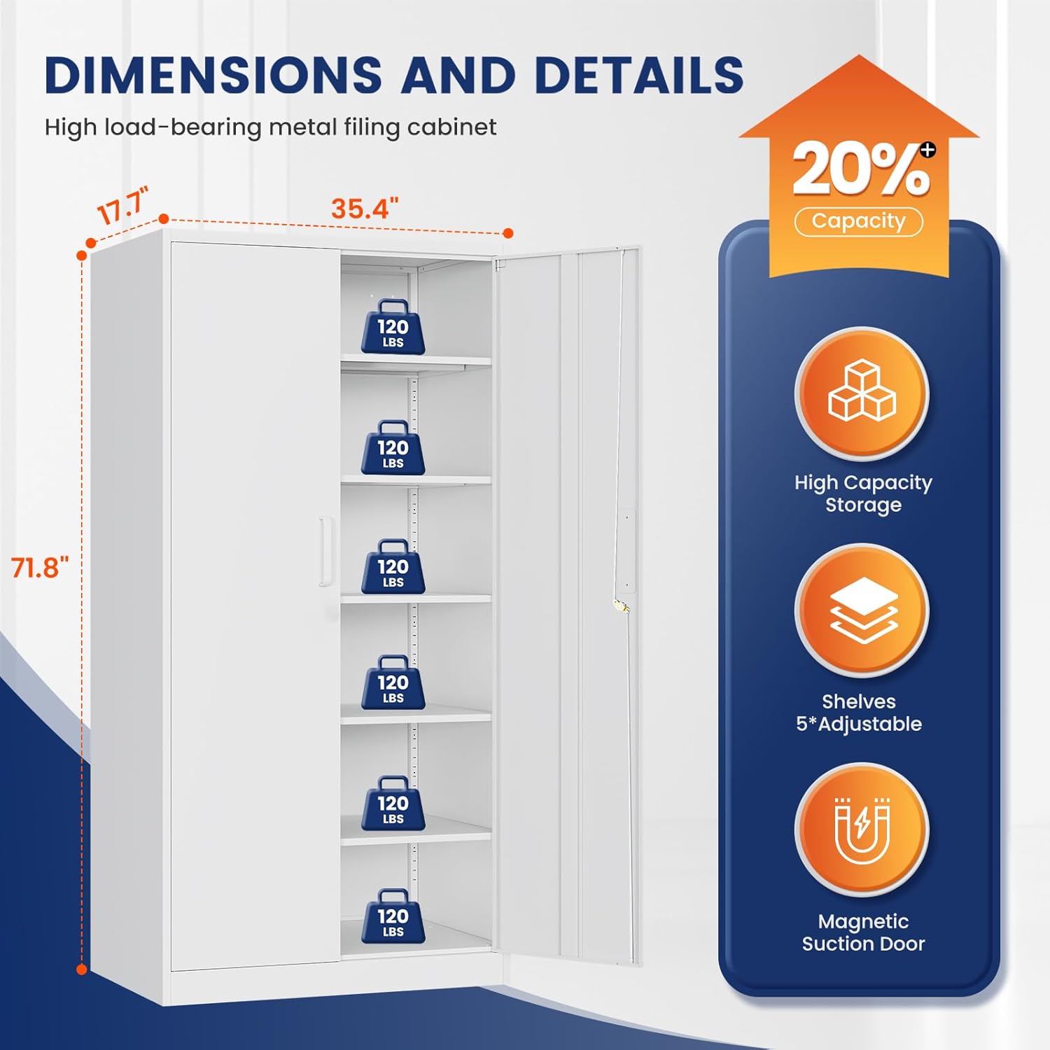 - 『WEIGHT CAPACITY』: Sturdy and reliable - each of the 5 shelves in this tall cabinet can hold up to 180lbs, With a heavy duty metal frame, these shelves will stabilize their contents and protect them. Whether you want to store office files, garage tools, or other large and heavy items, it's no problem.