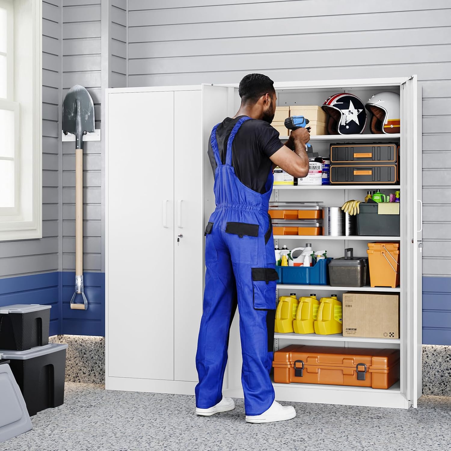 - 『EASY ASSEMBLING』: 72 inch×36 inch×18 inch (H x W x D). 2 wing doors with a 180°opening angle. The garage storage cabinet is knock-down structure, when you receive it, you need to assemble. The package comes with detailed assembly instructions, easy to assemble.