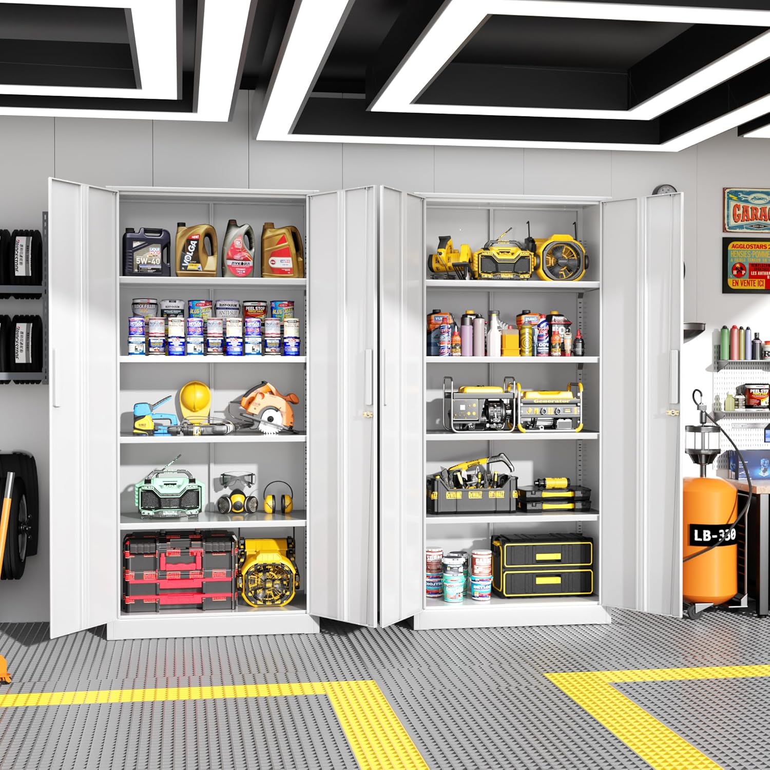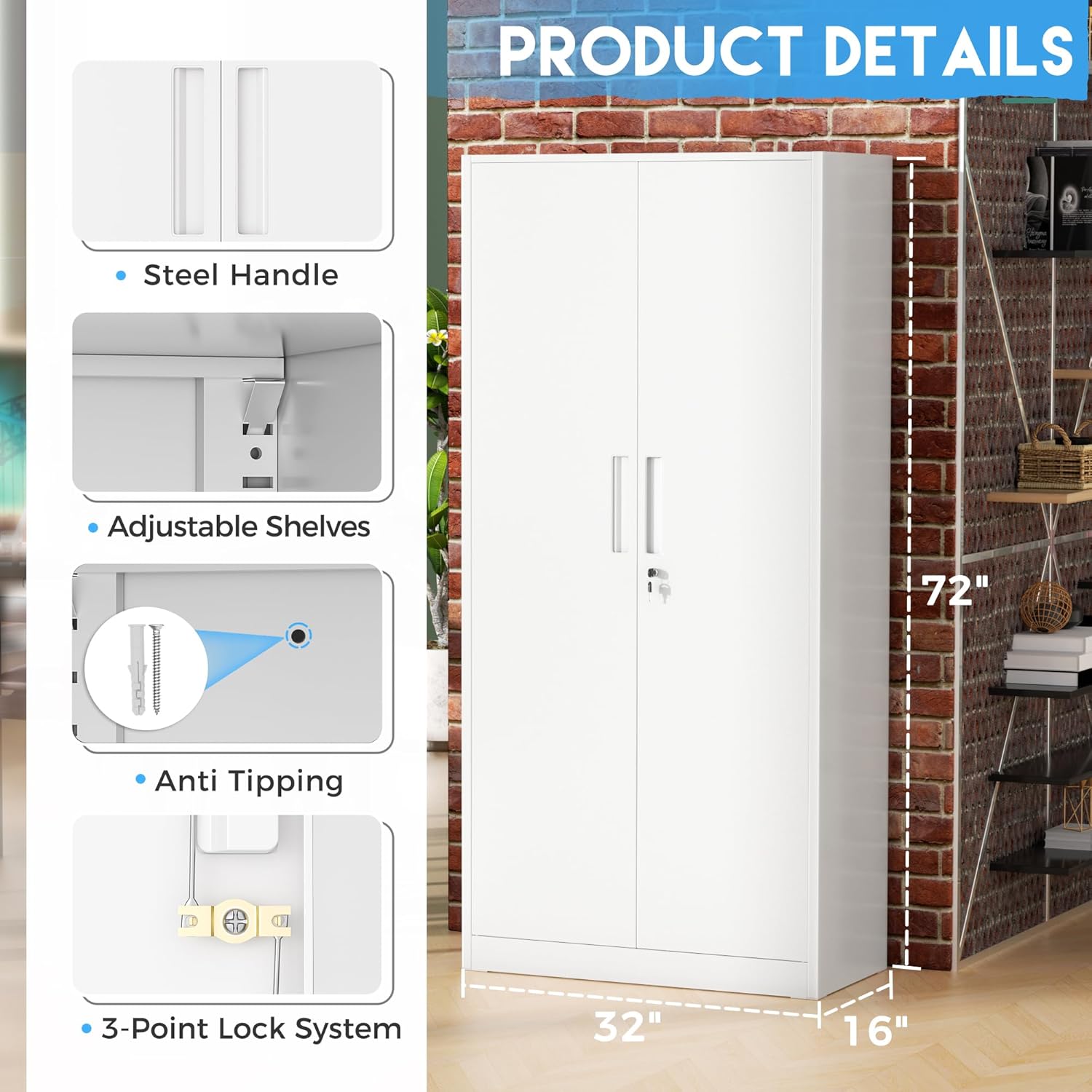 Greenvelly White Metal Storage Cabinet, 72" Steel Locking Cabinet with Doors and 4 Adjustable Shelves, Tall Tool Storage for Home Office, Metal Classroom Cabinet for Garage