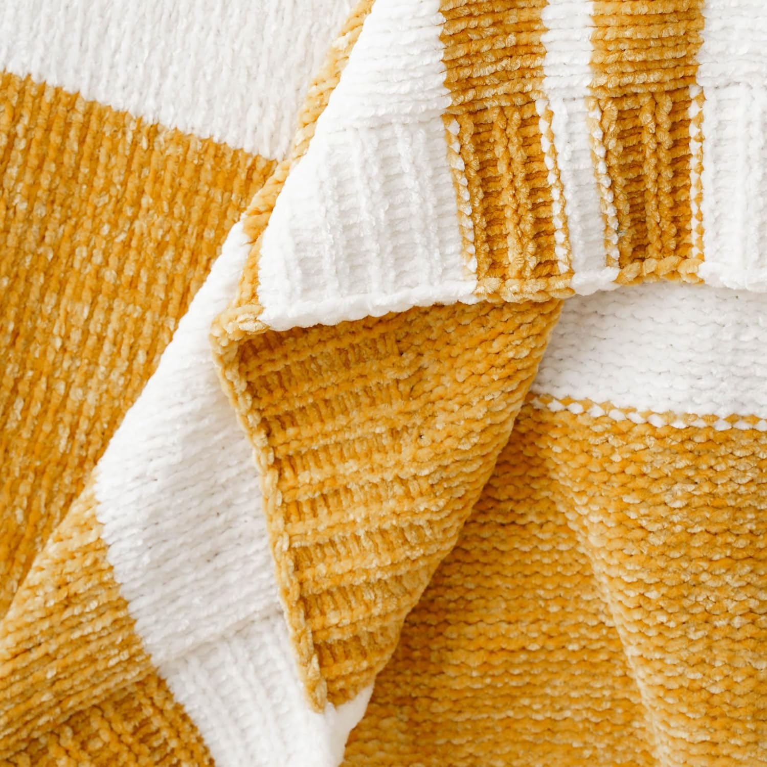 BATTILO HOME Mustard Yellow Throw Blanket for Couch, Soft Chenille Throw Blanket Knit Throw Blankets for Bed, Sofa,Chair, Farmhouse Throw Blankets, Fall Throw Blanket,51"x67"