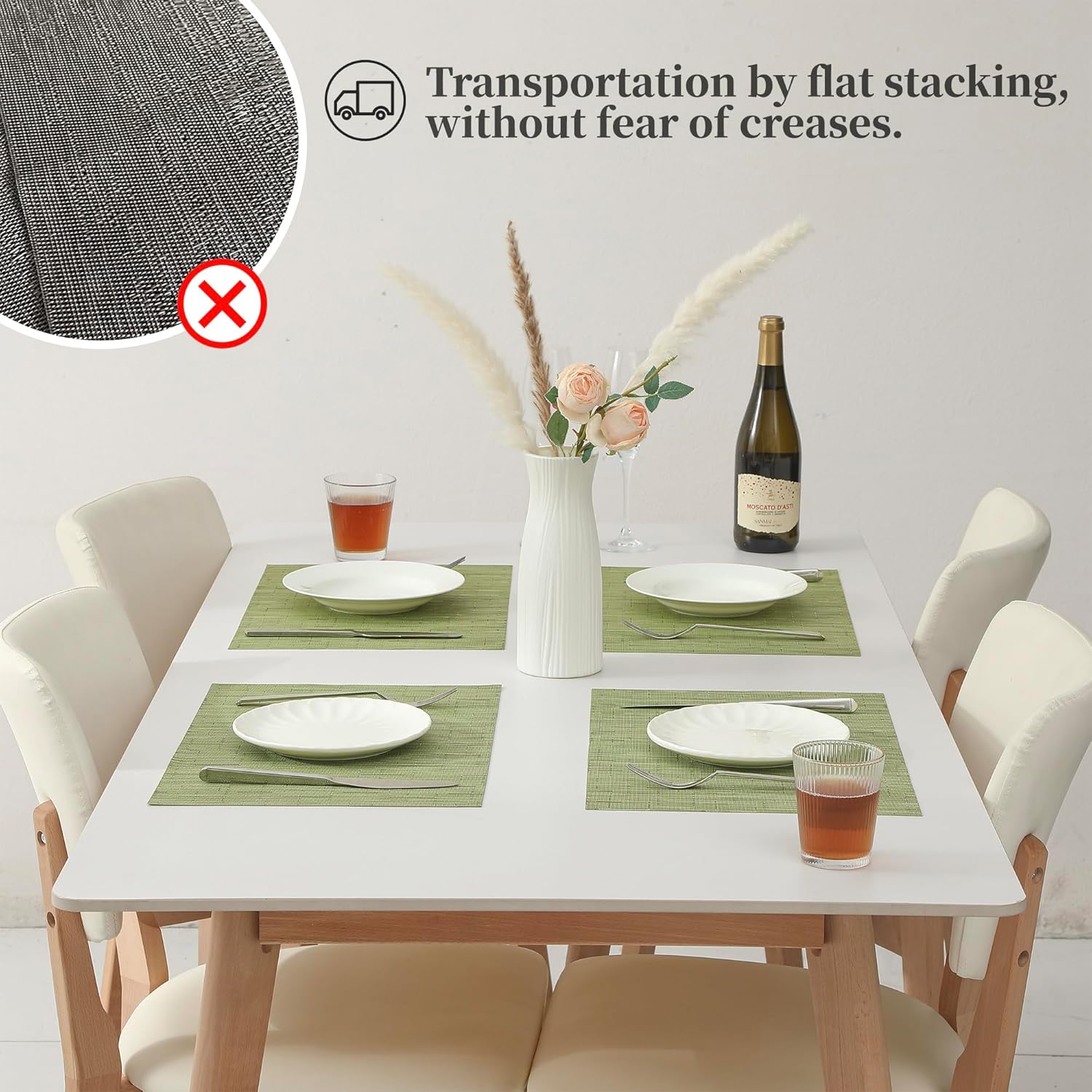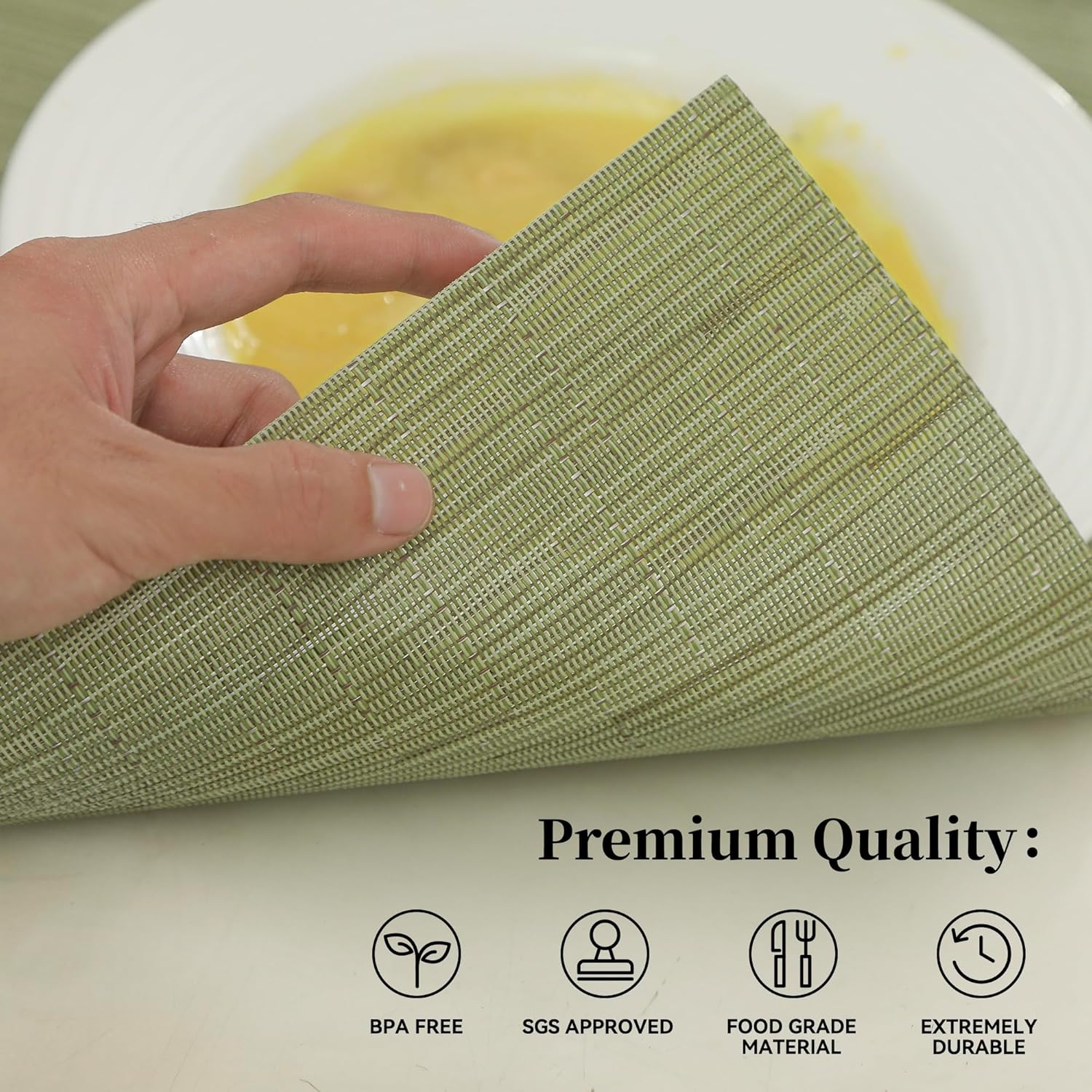 Leetaltree Pea Green Placemats Set of 6 - Heat Resistant Non-Slip Place mats for Dining Table, Washable Durable PVC Vinyl Woven Table Mats(Pea Green, 6)