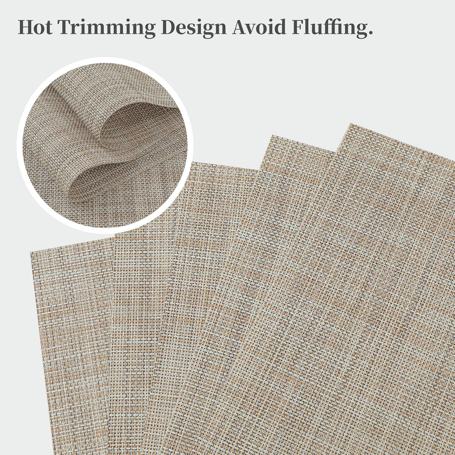 • Elegant and Practical Design: With a luxurious vinyl woven texture, precision cutting, and heat-trimmed edges, our double-sided placemats offer a sophisticated and practical solution. They provide a non-slip surface, resist fading, and are easy to clean, elevating your dining experience.