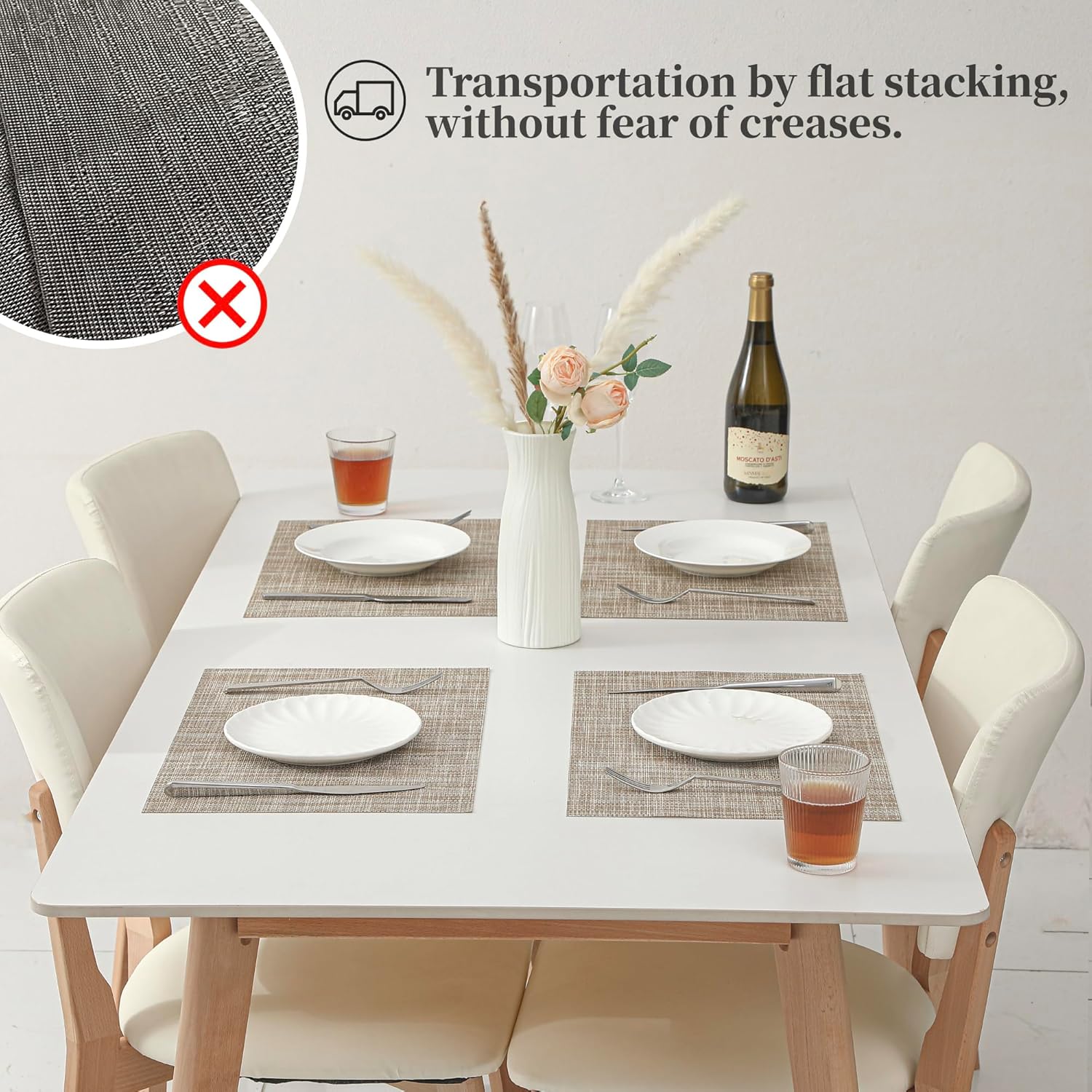 • Protects Your Table: Keep your table safe from scratches and spills with our heat-resistant placemats. They can withstand temperatures up to 176℉(80℃) and help keep food warm. Add style to your dining setting while ensuring table protection.
