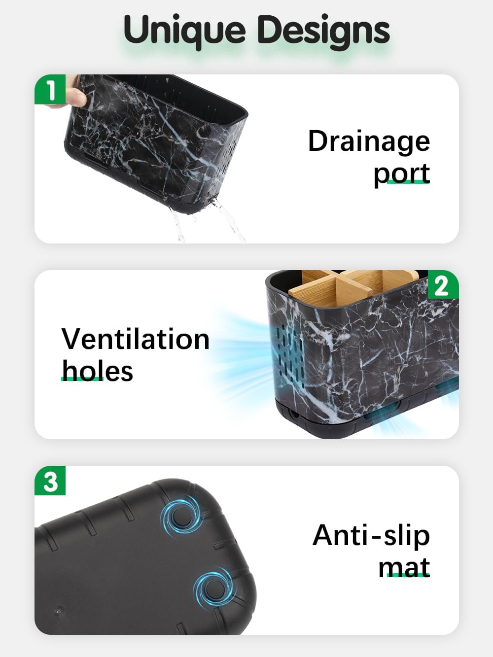 • Materials and Size:The toothbrush holders for bathrooms is made of food-grade plastic,reliable and durable. Size:7.5*4.7*3.4in, Marble Black Toothbrush Holders