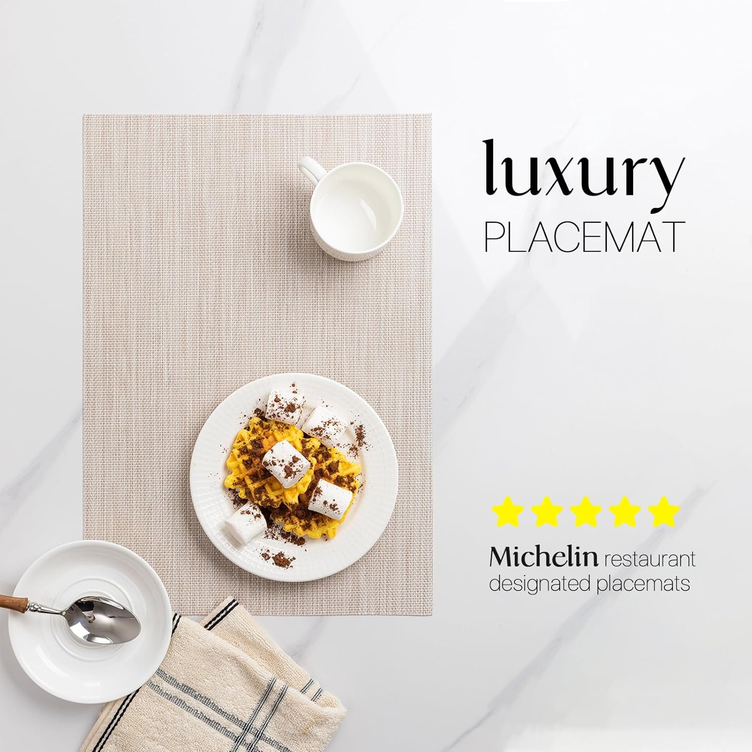 LEXMORE Placemats Set of 4 Vinyl/Plastic Woven Place Mats for Kitchen Table Indoor/Outdoor Washable Placemat Wipeable Dining Table Mats(Beige)