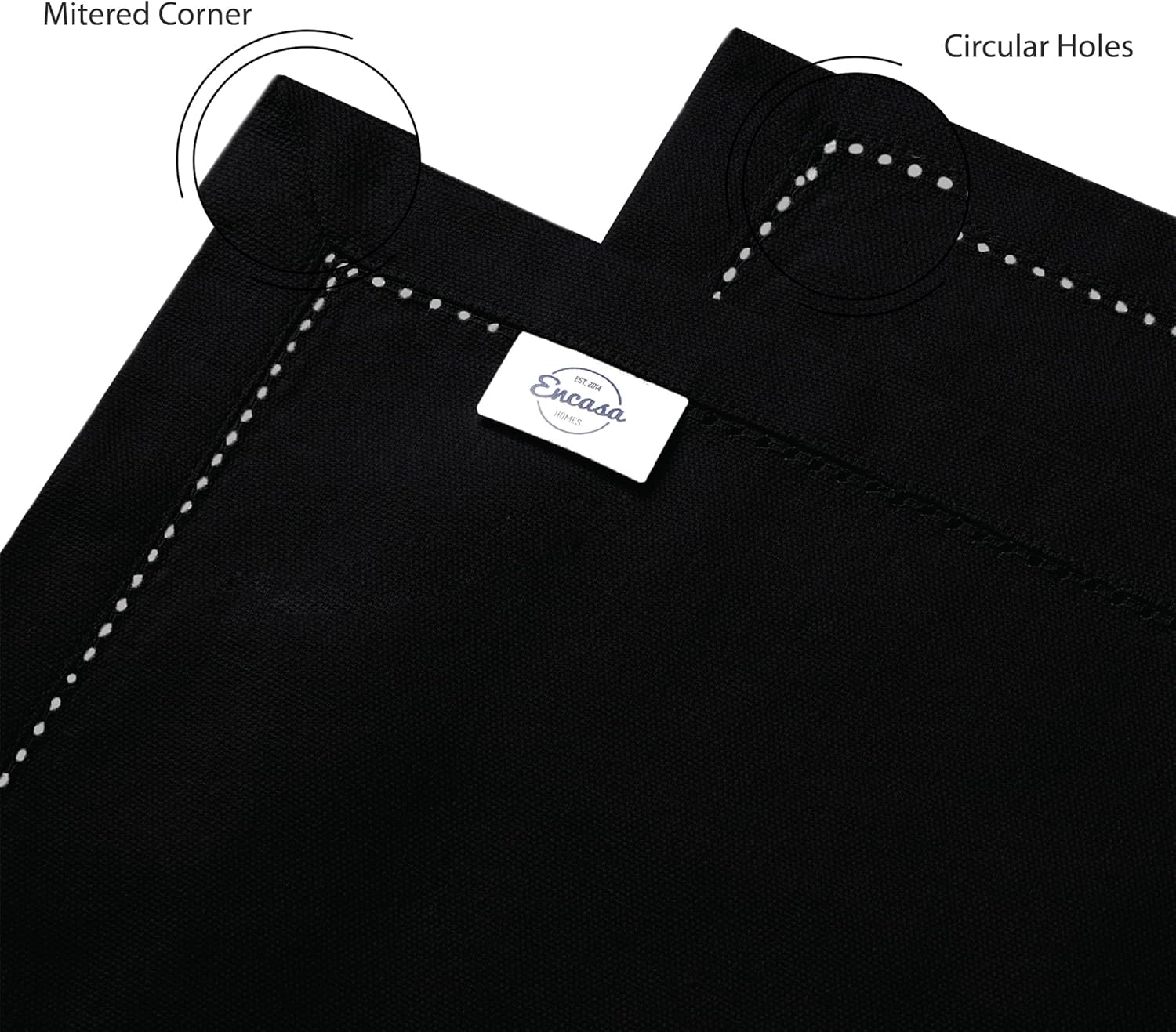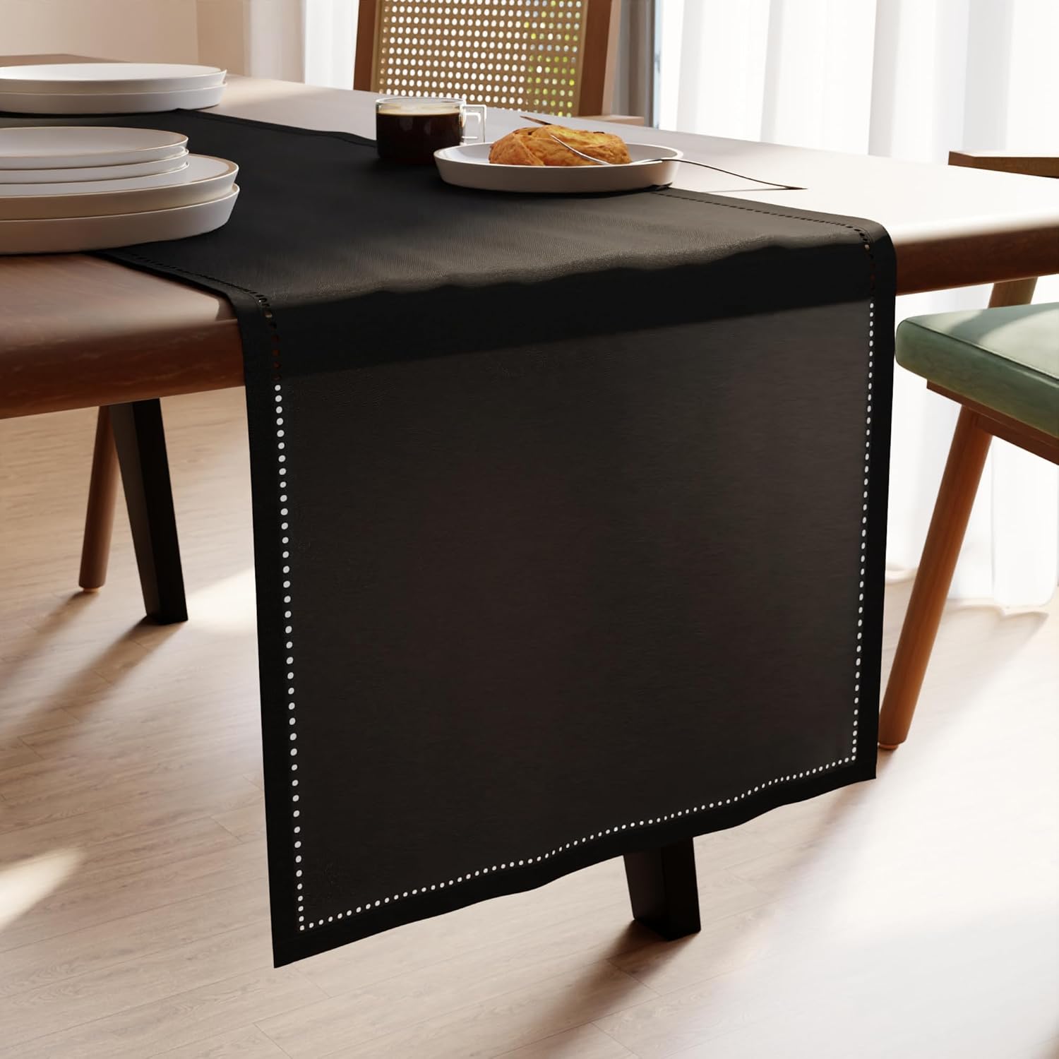 Encasa XO Dining Table Runner 16"x72" | Pure Cotton Hemstitched Design | Black - Machine Washable