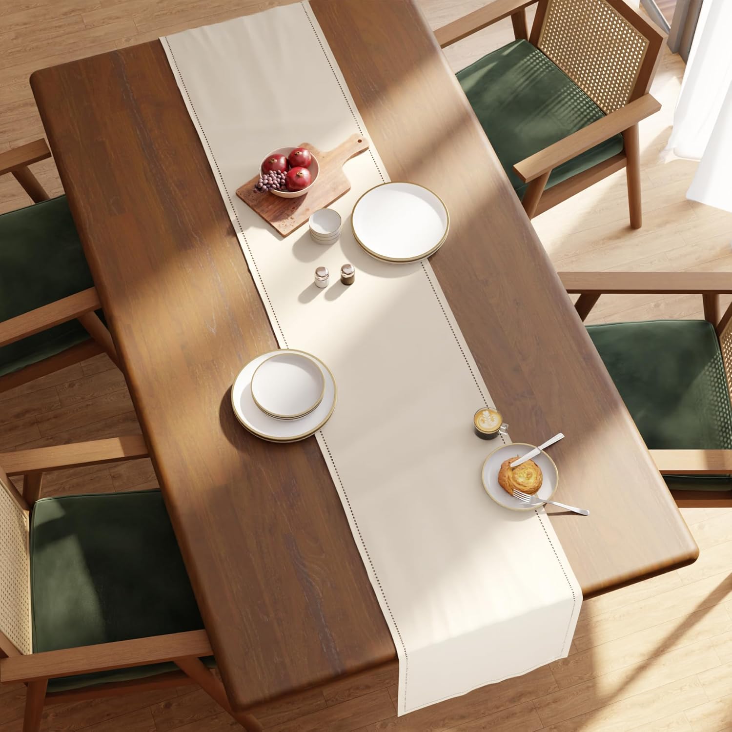 Encasa XO Dining Table Runner 16"x72" | Pure Cotton Hemstitched Design | Natural - Machine Washable