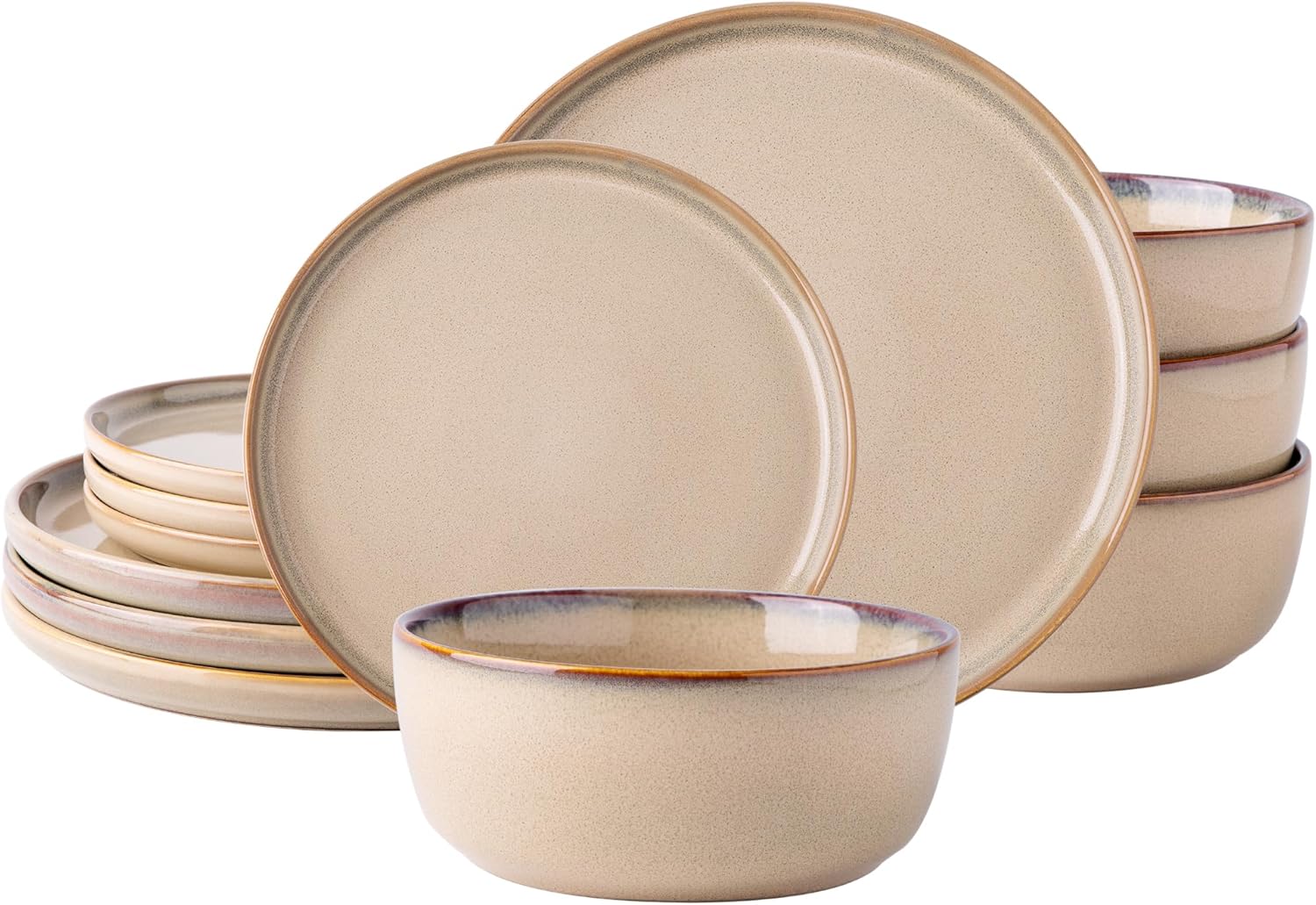 AmorArc Stoneware Dinnerware Sets,Round Reactive Ceramic Plates and Bowls Set,Highly Scratch Resistant | Dishwasher & Microwave Safe Dishes,Service for 4 (12pc)