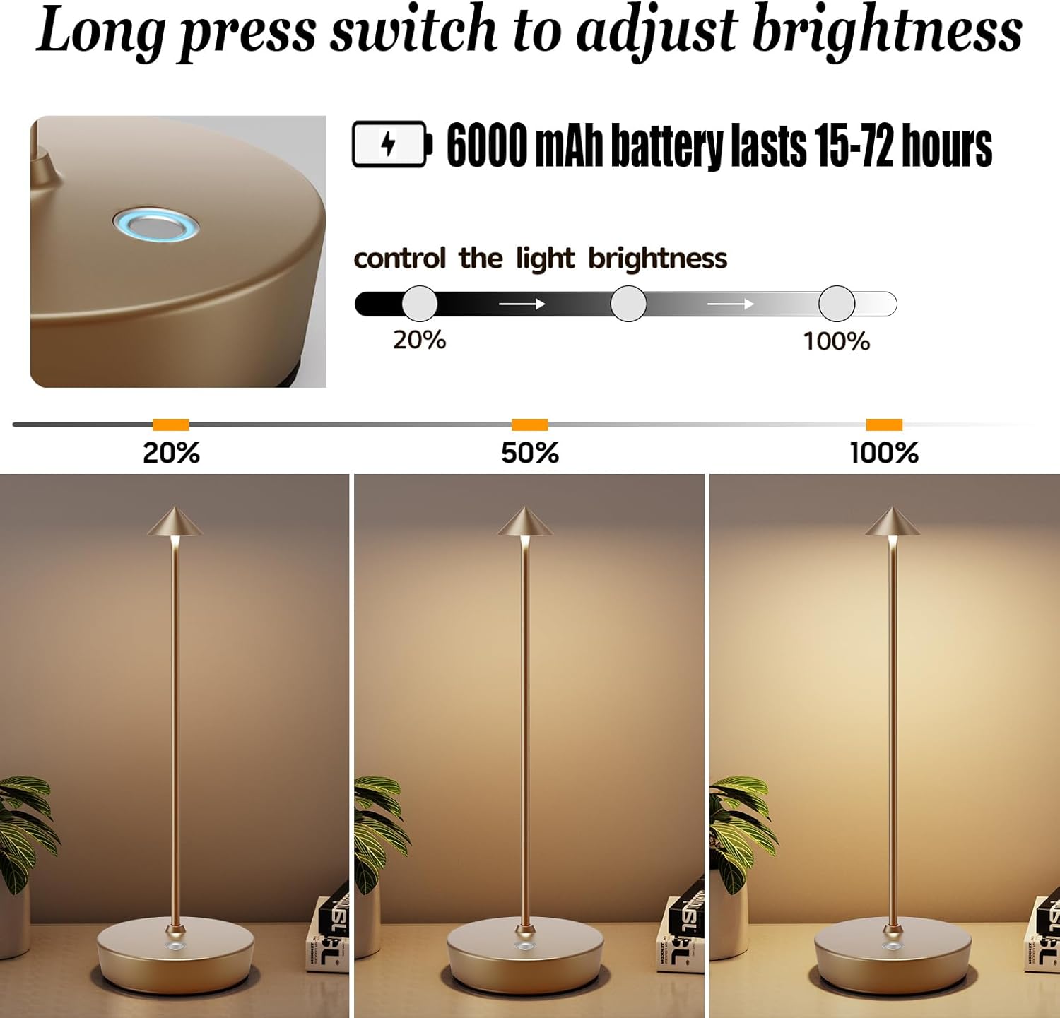 • 【Cordless table lamps】Elevate your space with our Cordless desk lamp's sleek aluminum alloy body. Its premium construction not only adds a touch of elegance but also ensures durability, making it a long-lasting addition to your home or office decor. Our Cordless desk lamp features a convenient Type-C charging port, allowing for fast and effortless charging. you're all set to enjoy the convenience of a cordless lighting experience.