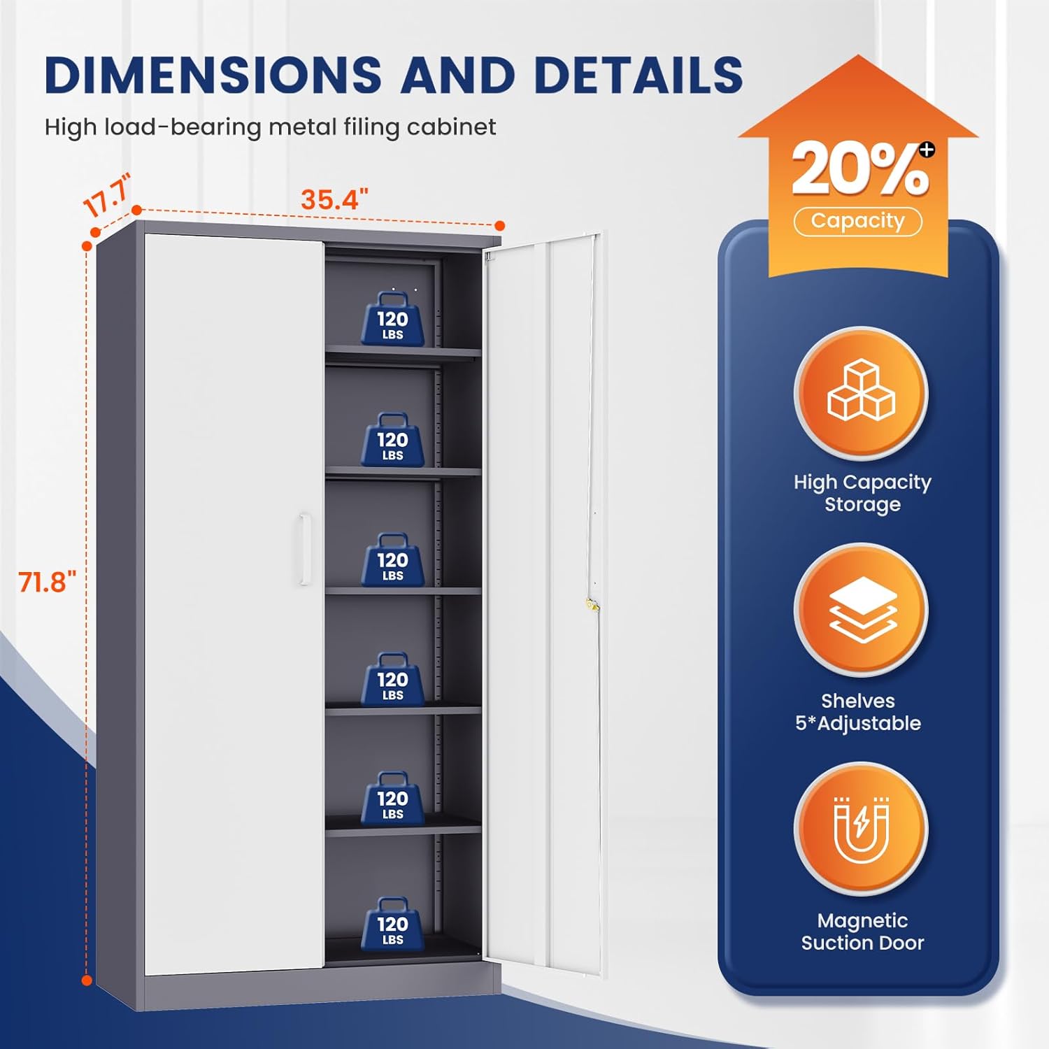 - 『WEIGHT CAPACITY』: Sturdy and reliable - each of the 5 shelves in this tall cabinet can hold up to 180lbs, With a heavy duty metal frame, these shelves will stabilize their contents and protect them. Whether you want to store office files, garage tools, or other large and heavy items, it's no problem.