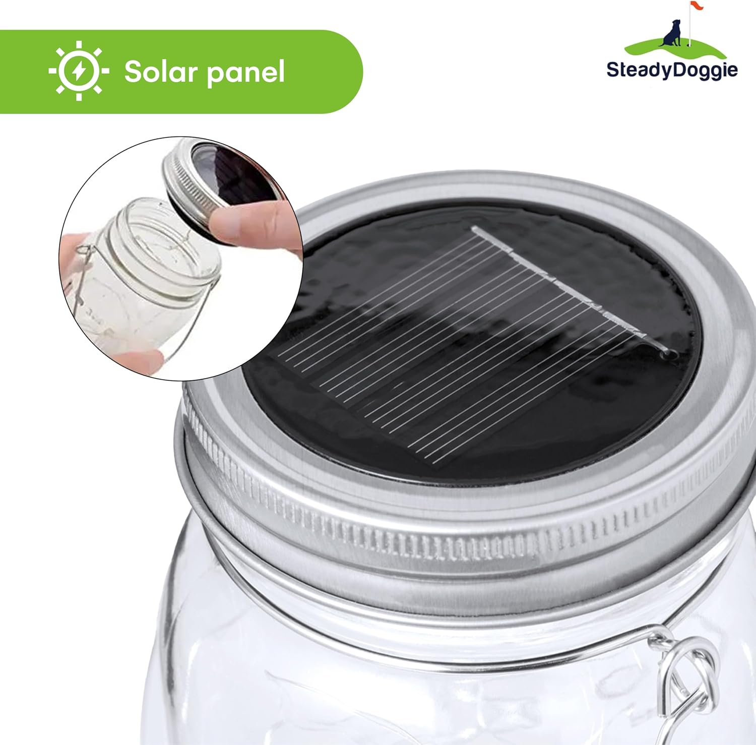 SteadyDoggie Solar Mason Jar Lights - Set of 2 Magical Patio Lights in Glass Lanterns - Hang Them Anywhere Outdoors for Enchanting Illumination - Waterproof and Decorative - 5.2" x 3"