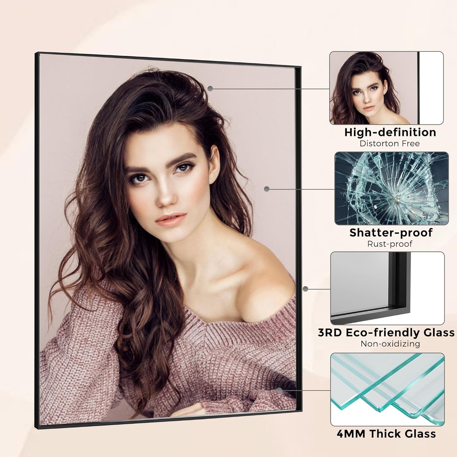 • ❤️【Premium Material】- Made of premium aluminum alloy and imported mirror materials, the mirror is more durable than those made of wood or rubber. The mirror edge is protected by the Aluminum frame from hurt and ensure beauty.
