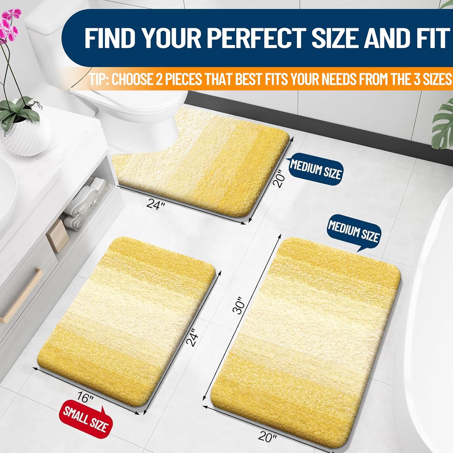 OLANLY Bathroom Rug Set 2 Piece, Soft Absorbent Microfiber Bath Rug Set, Non-Slip, Machine Wash Dry, Plush Shaggy Bath Mats for Bathroom (30"x20"+24"x16", Yellow)