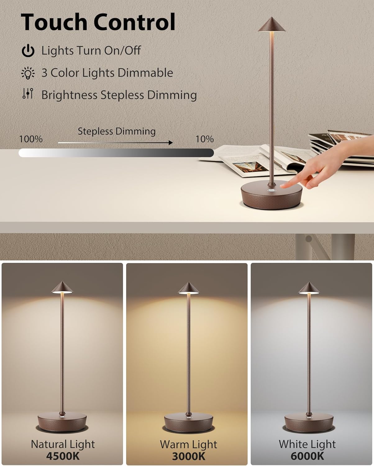 Cordless Table Lamps Rechargeable, 6000mAh Battery Operated LED Desk Lamp Outdoor Waterproof Portable Touch Dimmable Table Night Light for Patio Restaurant Dining Home Rust